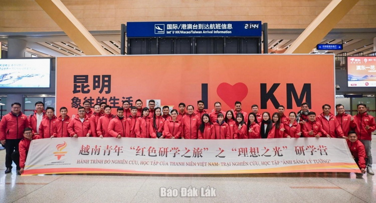 A 2025-ös második Vörös Ifjúságkutatási és Tanulmányi Úton részt vevő vietnami ifjúsági küldöttek Ho Si Minh-városból Kunming városába, Jünnan tartományba utaztak.