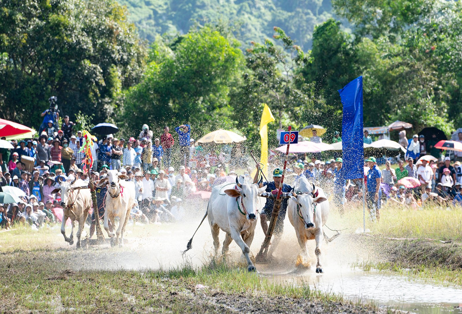 Két ökör versenyez a Bay Nui Ökörverseny Fesztiválon az An Giang Televíziós Kupáért 2025-ben. Fotó: LE TRUNG HIEU
