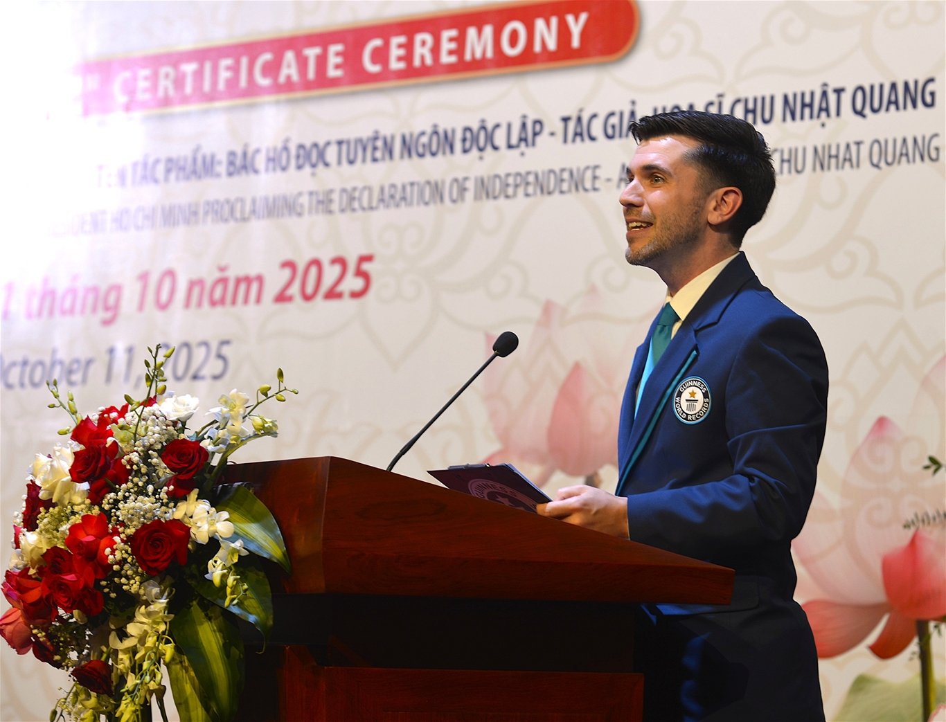 Az ünnepségen felszólalt Austin Johnson Clark Herzog, a Guinness Rekordok Könyvének képviselője, aki kifejezte benyomását Vietnam hagyományos kézművességéről és Chu Nhat Quang festőművész kreatív szelleméről, hangsúlyozva, hogy a mű nemcsak művészi értékkel bír, hanem nemzetközi kulturális és történelmi szimbólum is.