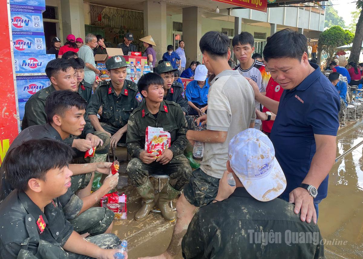 Mai Duc Thong elvtárs, a Tuyen Quang Újság, Rádió és Televízió főszerkesztője meglátogatta és bátorította a Quang Trung Általános Iskolában a katasztrófaelhárítási munkálatokban részt vevő tiszteket és katonákat. |