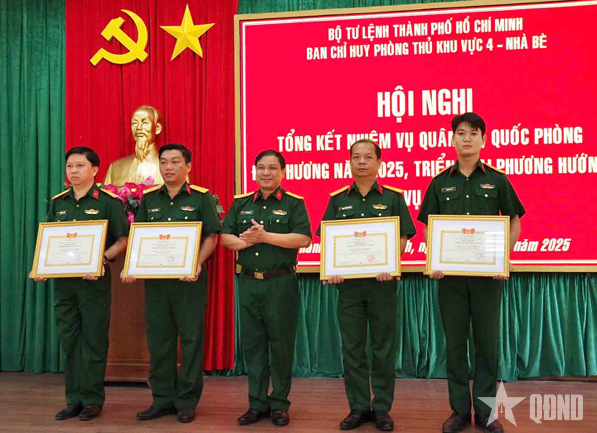 Pada kesempatan ini, Komando Pertahanan Wilayah 4 - Nha Be memberikan penghargaan kepada 19 individu dengan prestasi luar biasa dalam Gerakan Emulasi 2025.