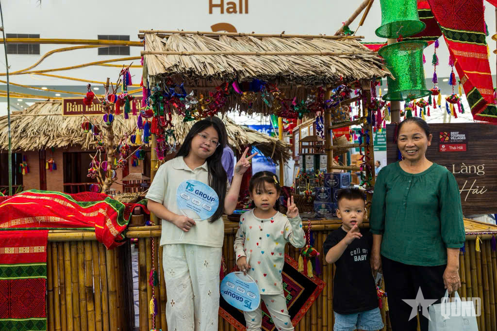 Warna-warni tekstil, lonceng angin, dan lampu hias dipadukan dengan aroma khas dataran tinggi seperti teh, madu, minyak esensial... menciptakan fitur unik tanah Thai Nguyen mini di jantung pameran.