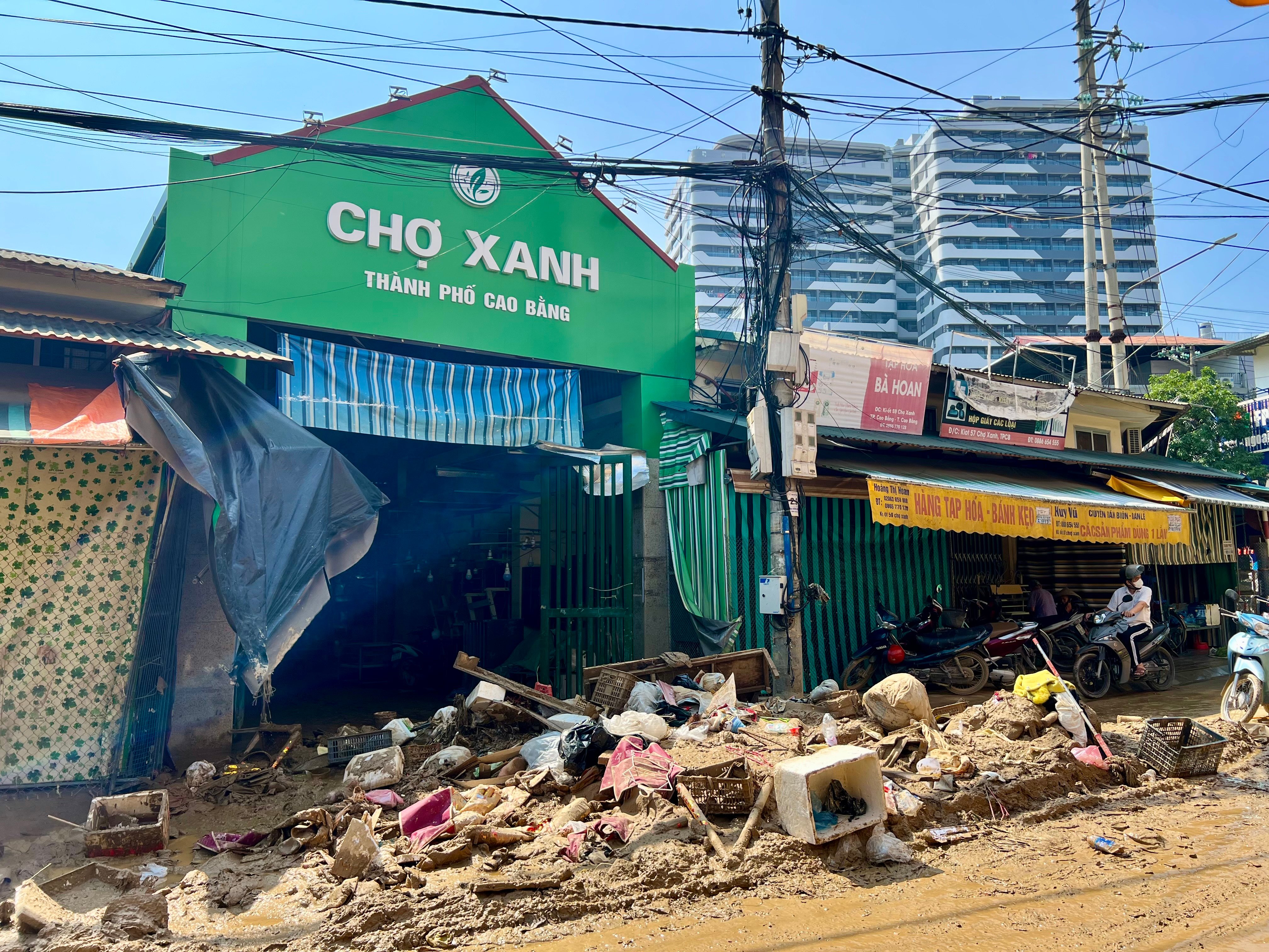 Akibat dampak badai No. 10 dan No. 11, permukaan air Sungai Bang naik drastis, membanjiri Pasar Hijau dan bisnis-bisnis di sekitarnya. Seluruh pasar terendam air, beberapa tempat mencapai kedalaman lebih dari 2 meter. Deretan kios yang dulu ramai kini hanya berlumpur dan rak-rak yang hancur, menyebabkan banyak pedagang kecil menderita kerugian ratusan juta hingga miliaran dong, bahkan kehilangan seluruh usaha yang telah mereka bina selama bertahun-tahun. "Apa lagi yang tersisa?" - itulah jawaban umum sebagian besar pedagang kecil ketika membahas kerusakan dan kerugian. Pasar Hijau, yang paling ramai di kawasan itu, kini hanya berlumpur, rak-rak yang hancur, papan reklame, dan suara ekskavator serta pompa yang sedang membersihkan.