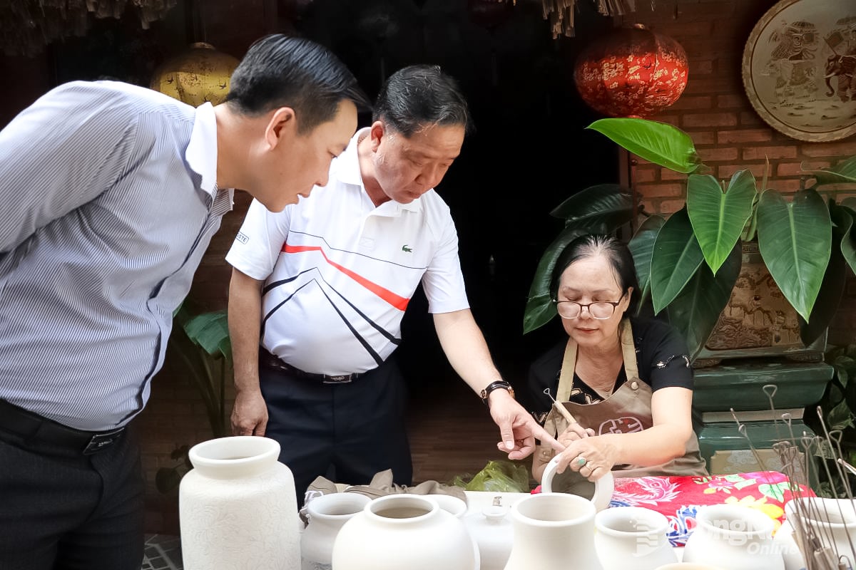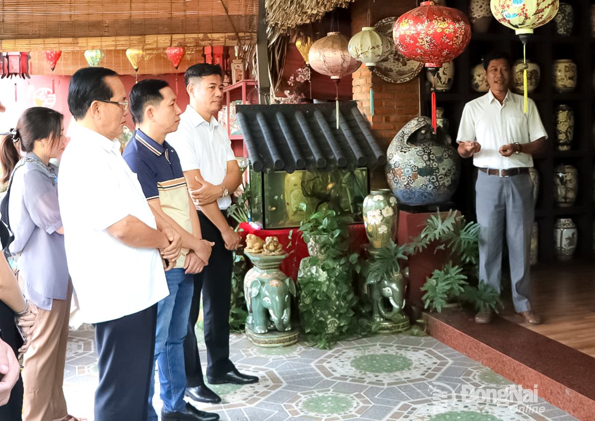 Oleh karena itu, tim survei mengunjungi lokasi-lokasi berikut: Kuil Sastra Tran Bien - tempat semangat belajar dan nilai-nilai budaya nasional bertemu dan dihormati; Fasilitas Produksi Keramik Tradisional Bien Hoa - salah satu warisan unik negeri Dong Nai selama ratusan tahun. Di Fasilitas Produksi Keramik Bien Hoa, tim survei mengunjungi ruang pamer keramik dan menyaksikan proses glasir titik pada produk keramik oleh para pengrajin tembikar terampil.