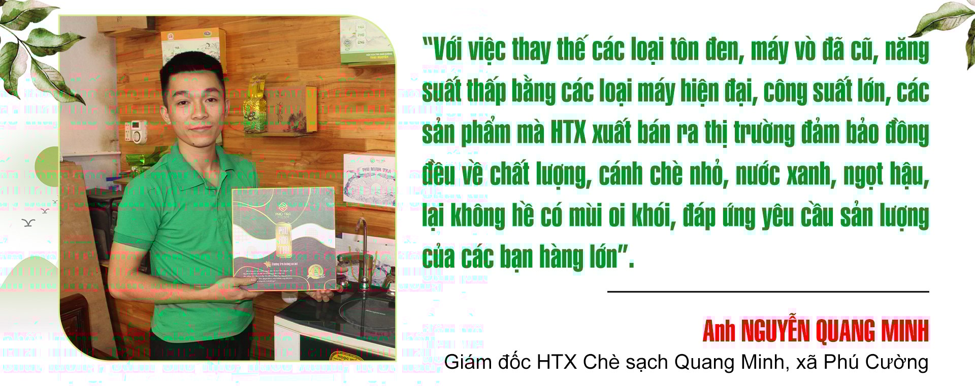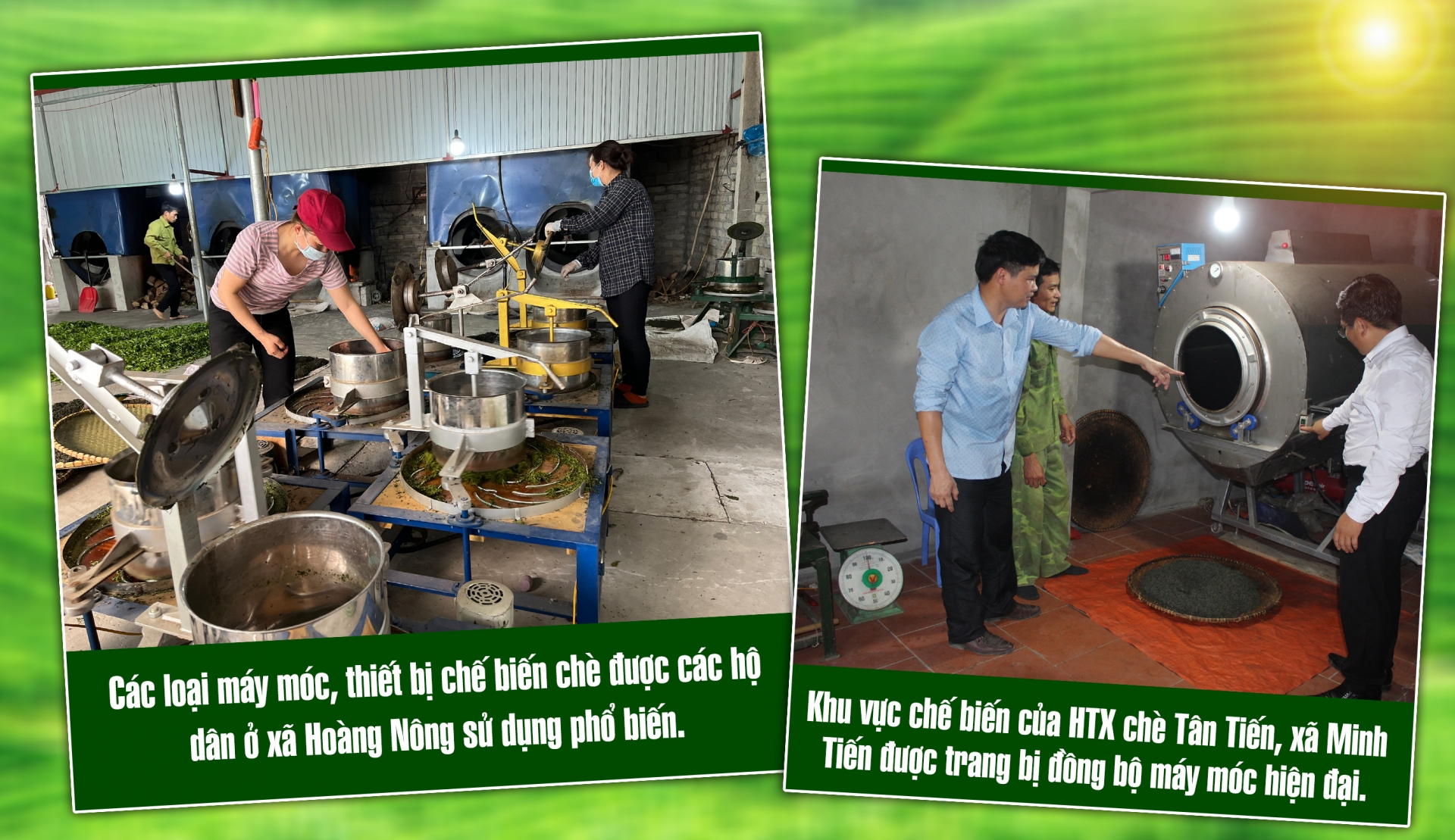 Penerapan teknologi yang efektif dan konversi metode produksi yang tepat membantu produk teh memiliki posisi yang stabil, sehingga nilainya meningkat secara bertahap. Hingga saat ini, tingkat mekanisasi pada tahap pemanggangan dan penggulungan teh telah mencapai 100%; pada tahap pengawetan, telah mencapai 60%... Seluruh distrik Dai Tu saat ini memiliki hampir 19.000 mesin pemanggang teh bermotor, lebih dari 150 mesin pemanggang teh gas dan listrik; lebih dari 18.000 mesin penggulung teh; lebih dari 4.000 mesin pemotong teh; hampir 300 mesin vakum...