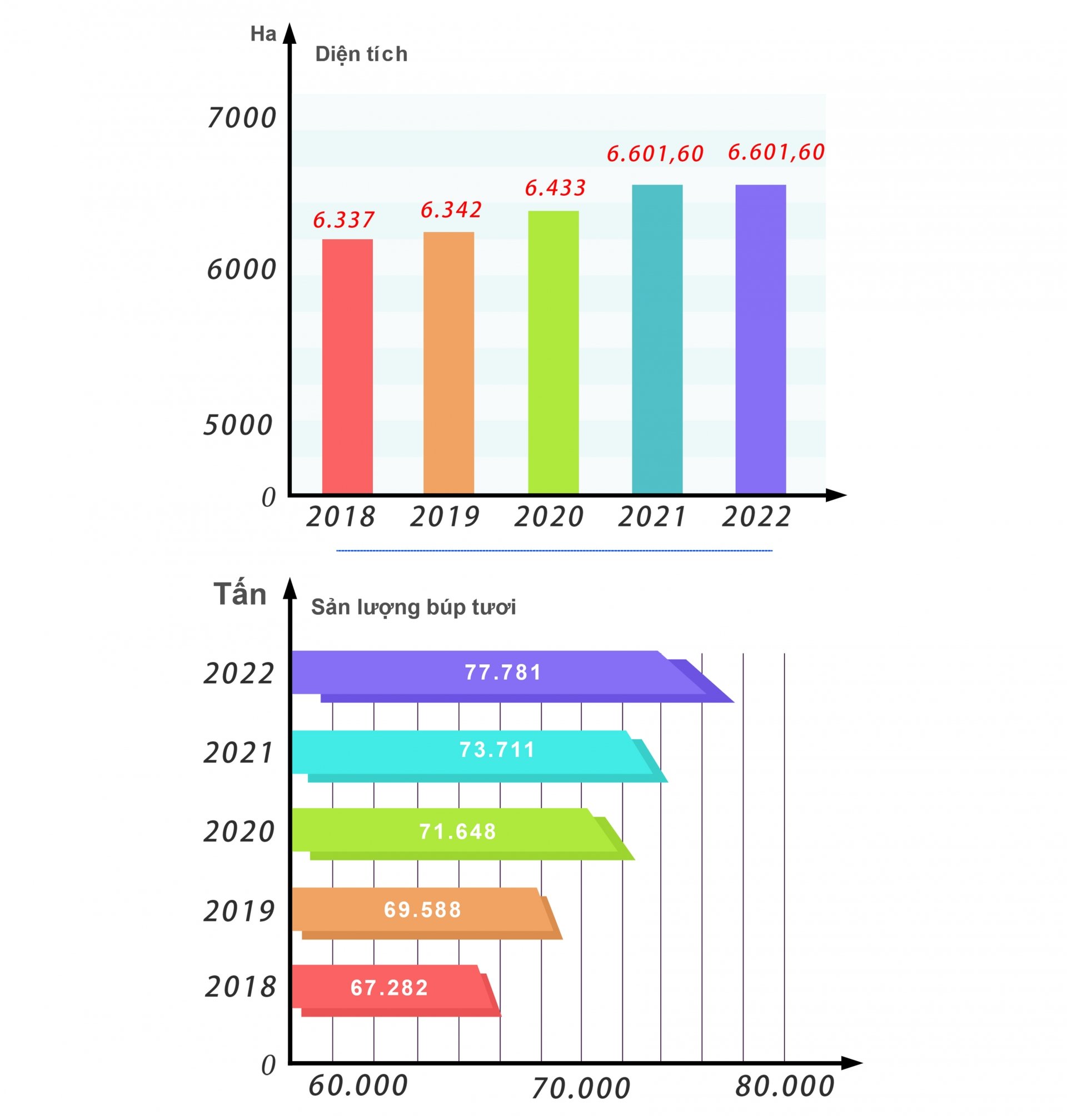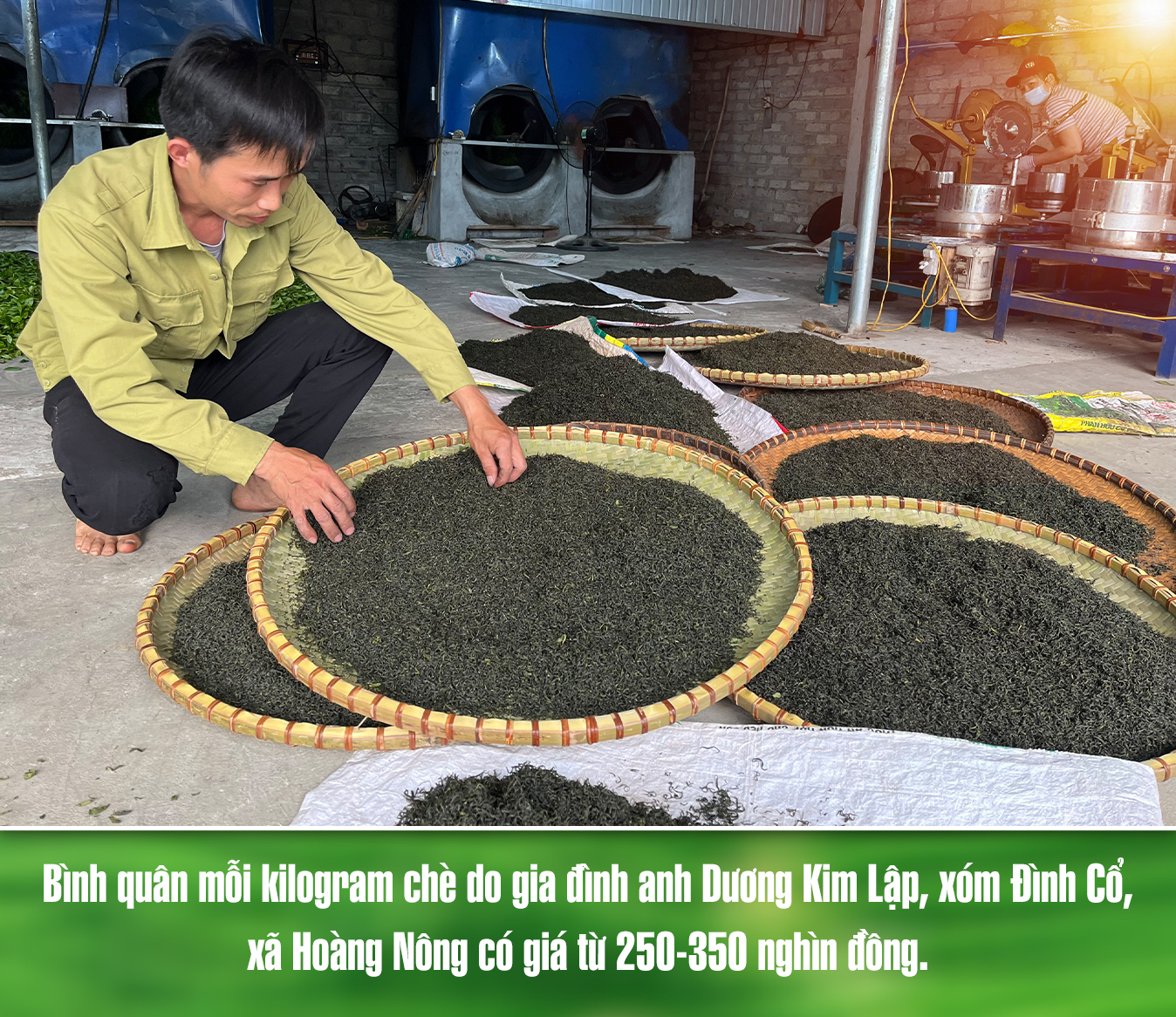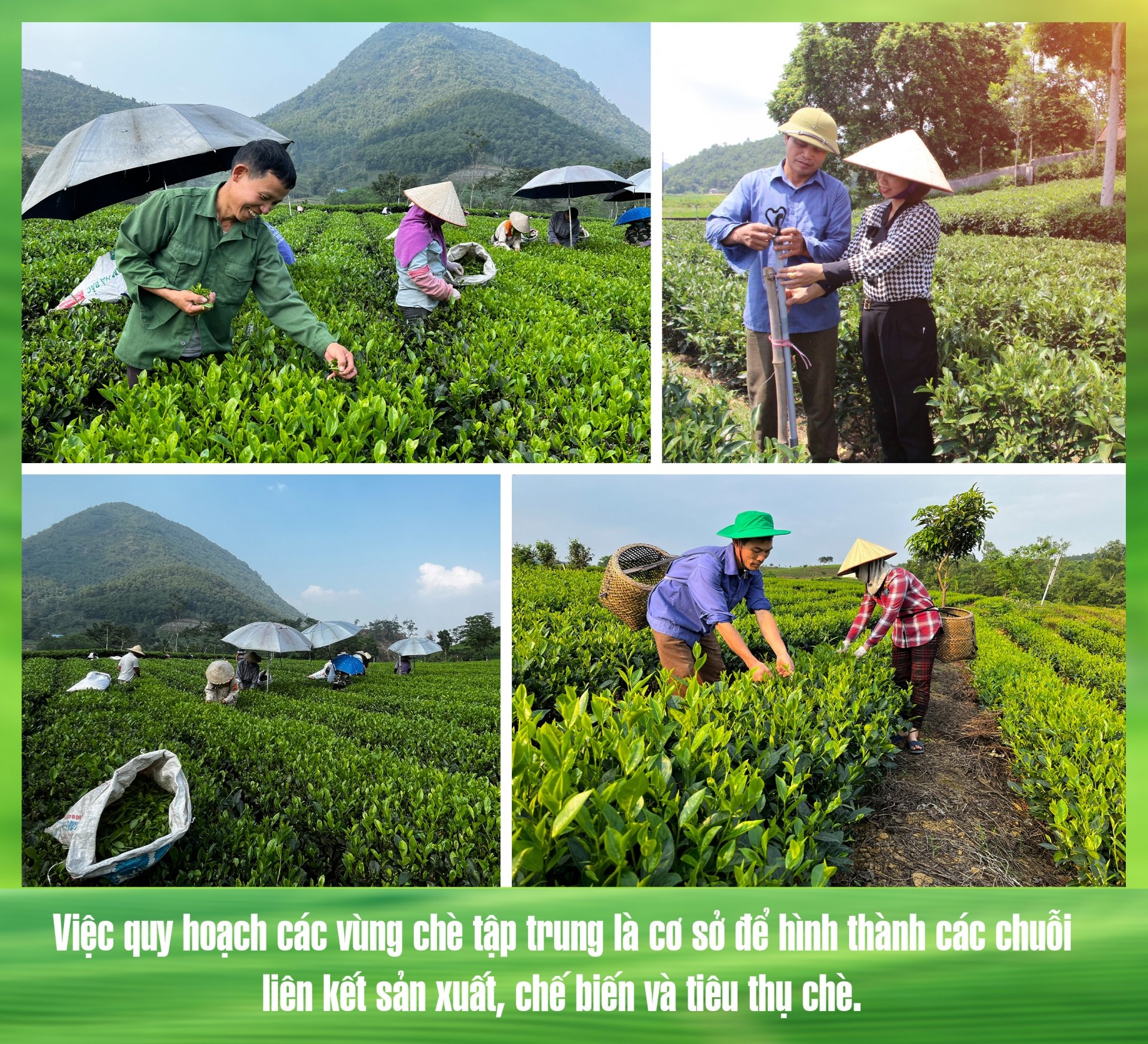 Selain varietas teh dataran tengah, dalam beberapa tahun terakhir, masyarakat setempat juga aktif memperkenalkan varietas teh hibrida dengan produktivitas dan kualitas tinggi, seperti: LDP1, TRI777, Long Van, Bat Tien... Saat ini, luas areal varietas teh baru mencapai sekitar 5.300 hektar, mencakup lebih dari 80% total luas areal teh di kabupaten ini. Pada tahun 2022, total produksi kuncup teh segar diperkirakan mencapai hampir 80.000 ton; nilai produk teh mencapai hampir 2.000 miliar VND; nilai produk per hektar lahan teh mencapai 308,8 juta VND.