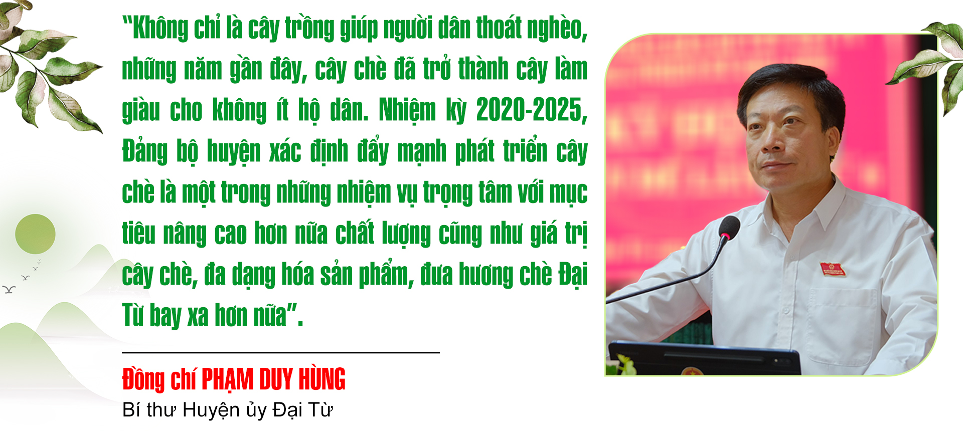 Dari berbagai sumber dukungan provinsi, sejak tahun 2016 hingga sekarang, Distrik Dai Tu telah melaksanakan serangkaian proyek yang bertujuan mengembangkan produk teh melalui dukungan mesin dan peralatan pengolahan. Bersamaan dengan itu, banyak program dan proyek telah dilaksanakan untuk mendukung masyarakat agar dapat secara bertahap menggunakan mesin produksi.