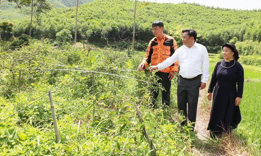 Bahasa Indonesia: Kami, bersama dengan staf Departemen Kebudayaan dan Masyarakat Komune Kep, mengunjungi peternakan Ibu Dao Thi Yen (lahir tahun 1975), Desa Heo B, sebuah rumah tangga khas dalam pengembangan peternakan di daerah tersebut. Dengan model pemeliharaan ayam dan babi liar, keluarganya telah keluar dari kemiskinan, menghasilkan ratusan juta dong setiap tahun. Pada tahun 2018, Serikat Wanita Komune menjamin pinjaman sebesar 50 juta dong dari Bank Kebijakan Sosial dengan uang yang ia tabung, ia mulai membangun peternakan ayam liar. Meskipun banyak kesulitan, dengan kemauan untuk keluar dari kemiskinan, Ibu Yen belajar tentang cara membangun peternakan, mencegah penyakit, memilih jenis... melalui buku, surat kabar, dan televisi. Setelah itu, ia terus berinvestasi dalam peternakan babi. Saat ini, total kawanan ayam dipelihara pada 2.000, pada waktu puncak hingga 4.000. Setiap tahun, keluarganya menghasilkan lebih dari 200 juta dong, yang memungkinkannya merenovasi rumah dan mengurus pendidikan anak-anaknya.