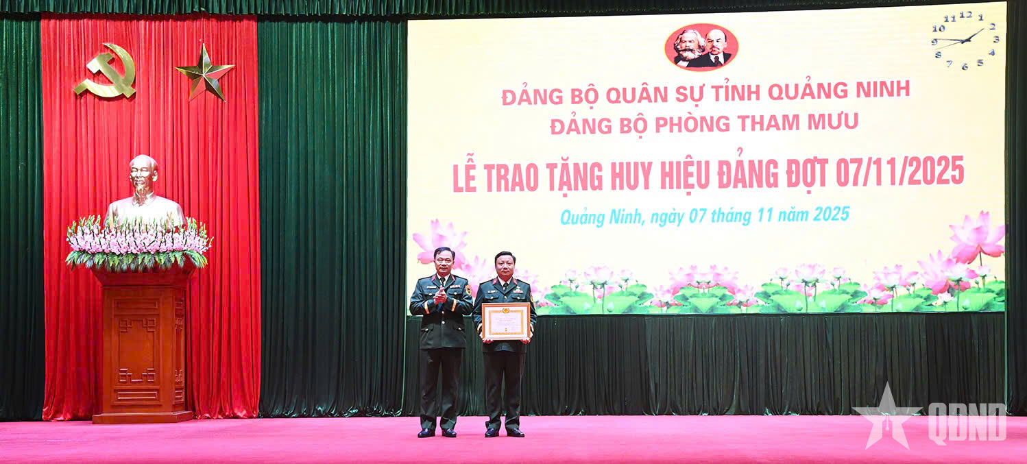 | Juga pada sore hari tanggal 7 November, atas izin Komite Partai Provinsi Quang Ninh, Kolonel Hoang Van Thuyet, anggota Komite Partai Provinsi, Wakil Sekretaris Tetap Komite Partai, Komisaris Politik Komando Militer Provinsi, menyerahkan lencana keanggotaan Partai selama 30 tahun kepada Letnan Kolonel Senior Pham Binh Quan, Sekretaris Komite Partai Departemen Politik, Wakil Kepala Politik Komando Militer Provinsi. |