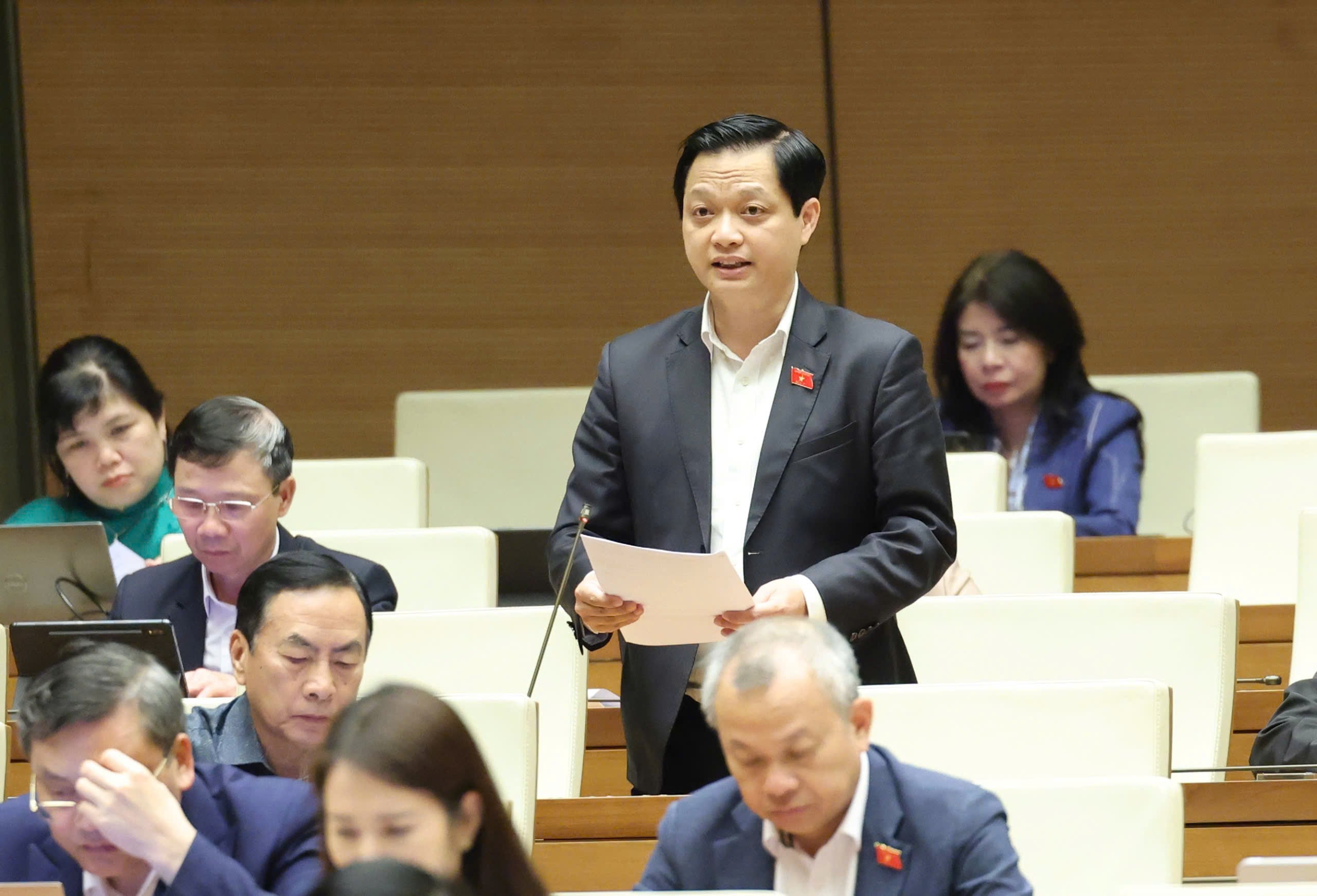 | Delegasi Nguyen Hai Nam berpartisipasi dalam diskusi di aula. Foto: Delegasi Majelis Nasional Kota |