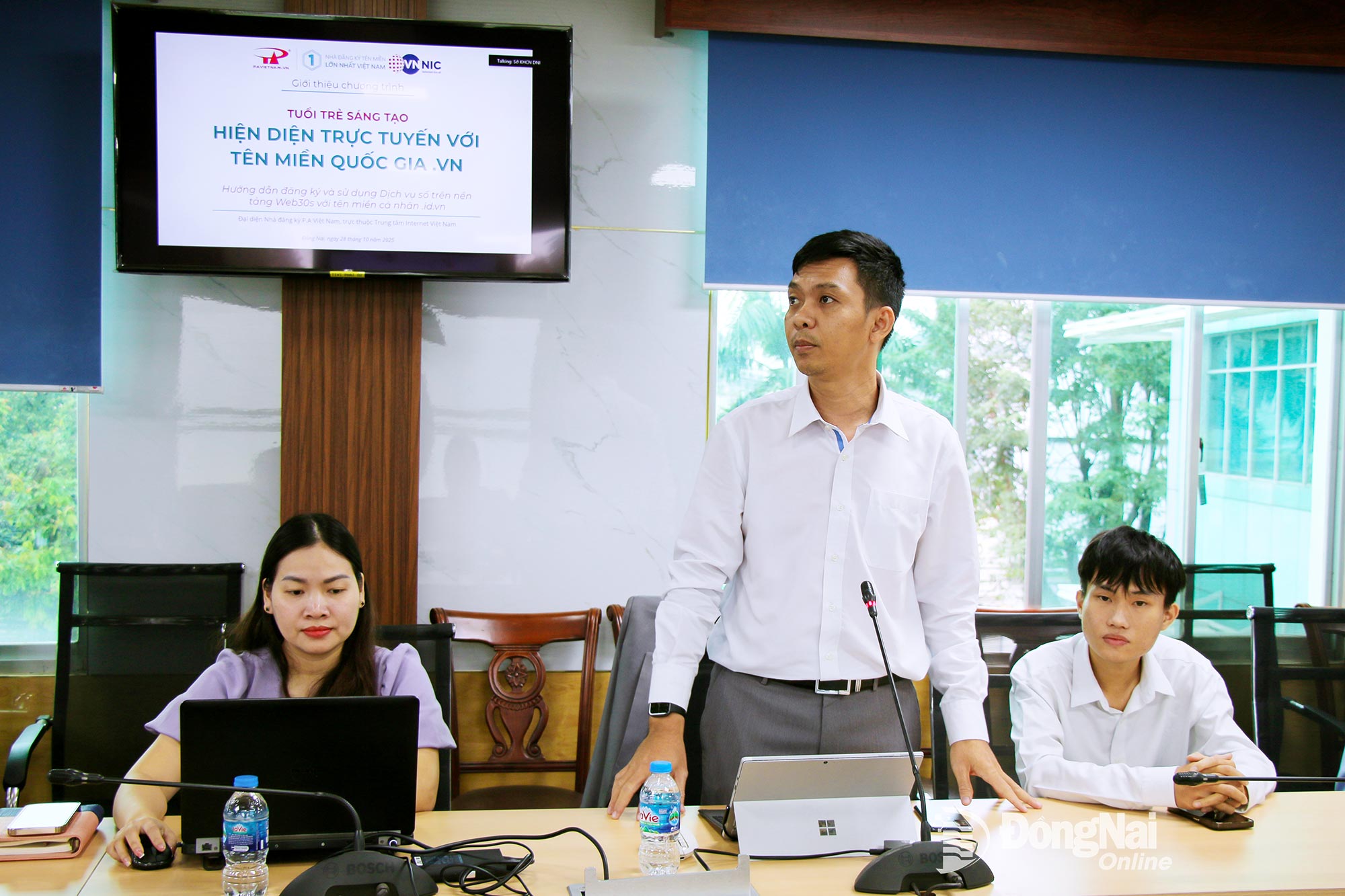 | Unit terkait memberikan panduan tentang pendaftaran dan penggunaan nama domain id.vn dan biz.vn serta layanan digital. Foto: Hai Quan |