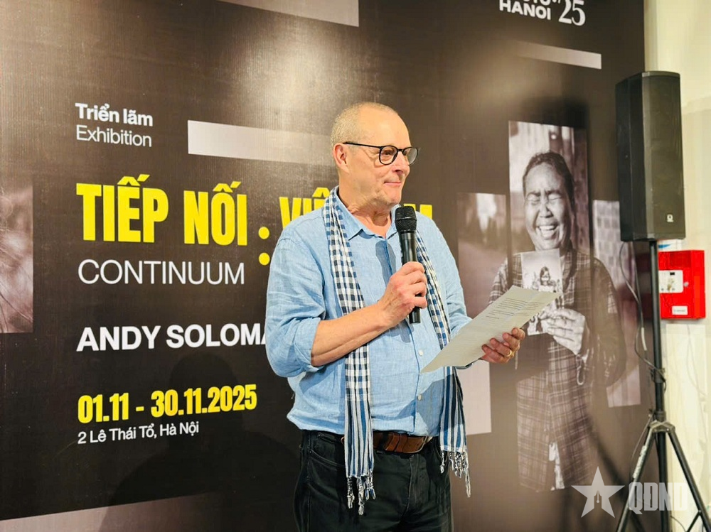 Fotografer Inggris Andy Soloman berbagi di pameran "Lanjutan: Vietnam". |