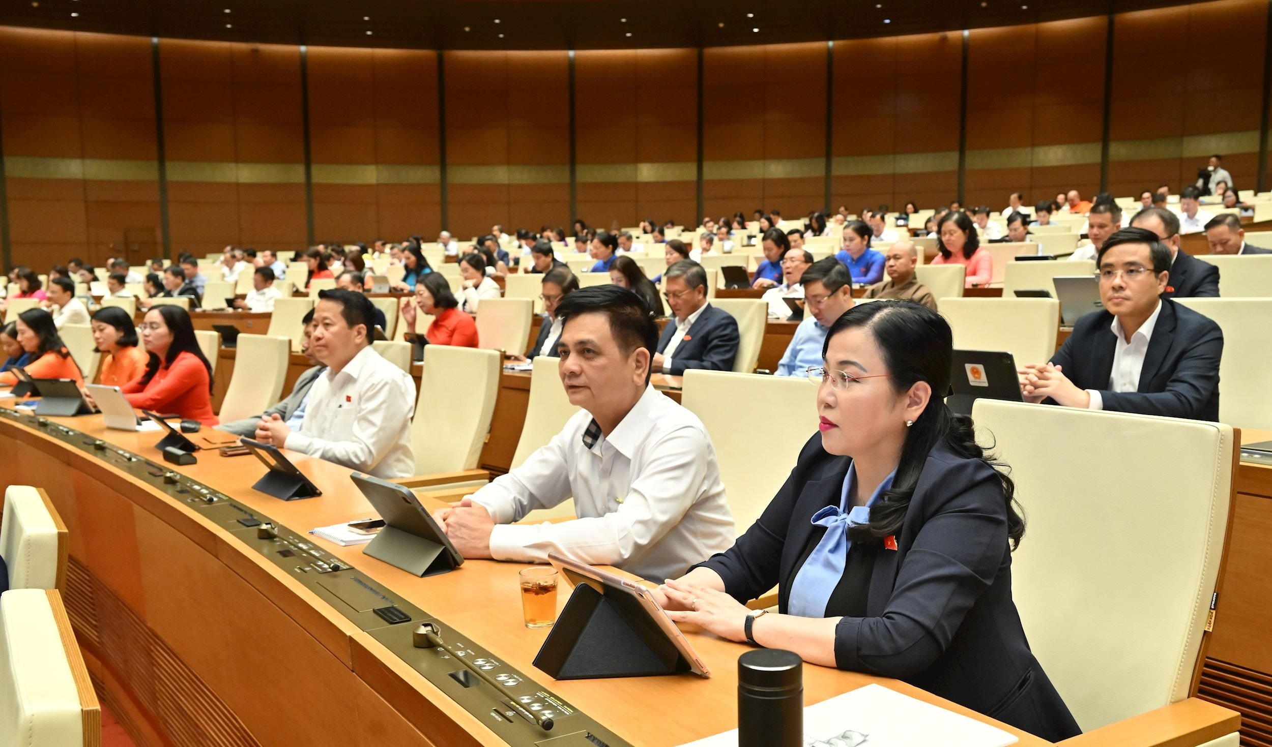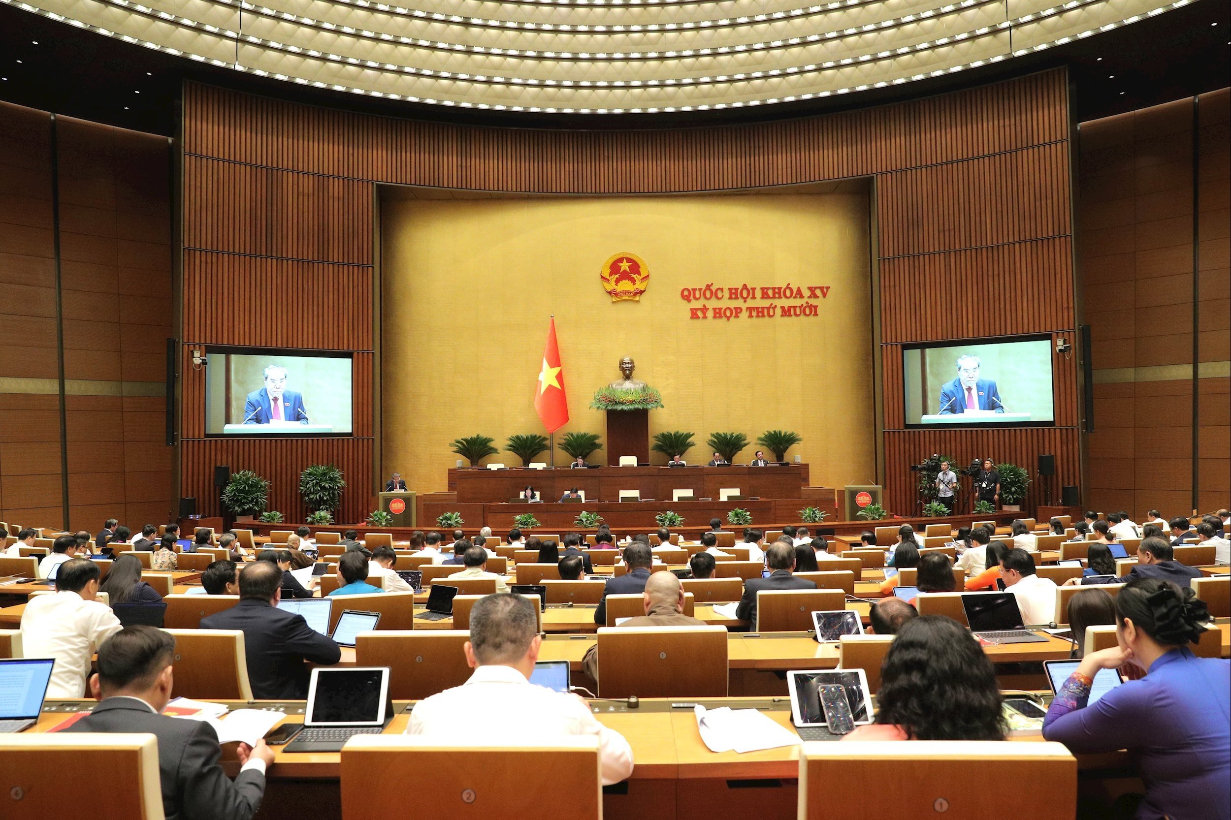 Khususnya, Majelis Nasional telah segera melembagakan kebijakan utama Partai dalam mengatur dan merampingkan aparatur sistem politik , membangun model pemerintahan daerah dua tingkat, dan terus menghilangkan kesulitan dan hambatan hukum, menciptakan terobosan kelembagaan untuk membawa negara ke era modernisasi, transformasi digital, transformasi hijau, dan pembangunan berkelanjutan.