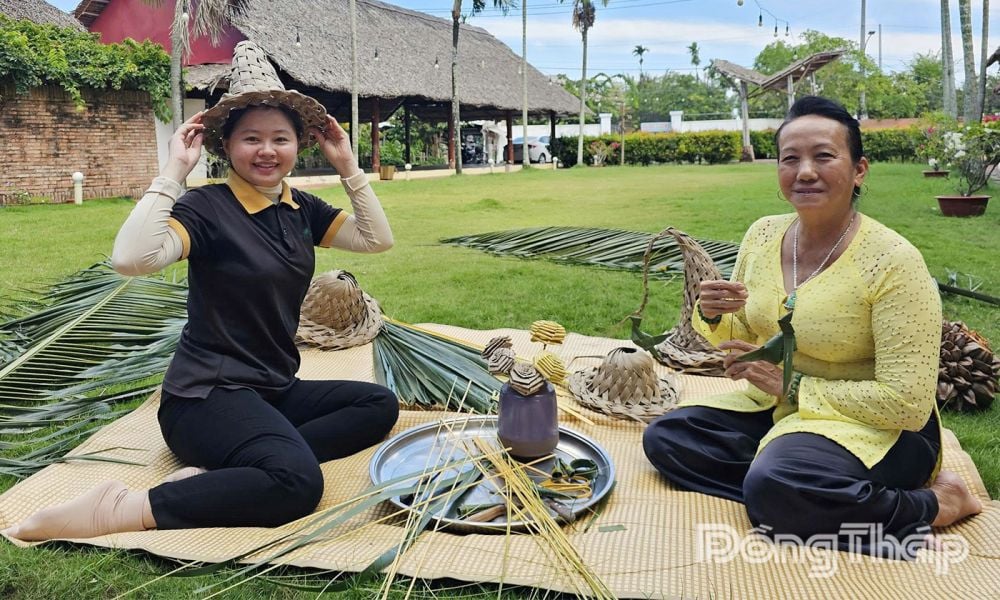 Di rumah kecil dekat ujung pulau kecil Thoi Son, para wisatawan, khususnya wisatawan Barat, selalu senang menyaksikannya mementaskan seni anyaman daun.