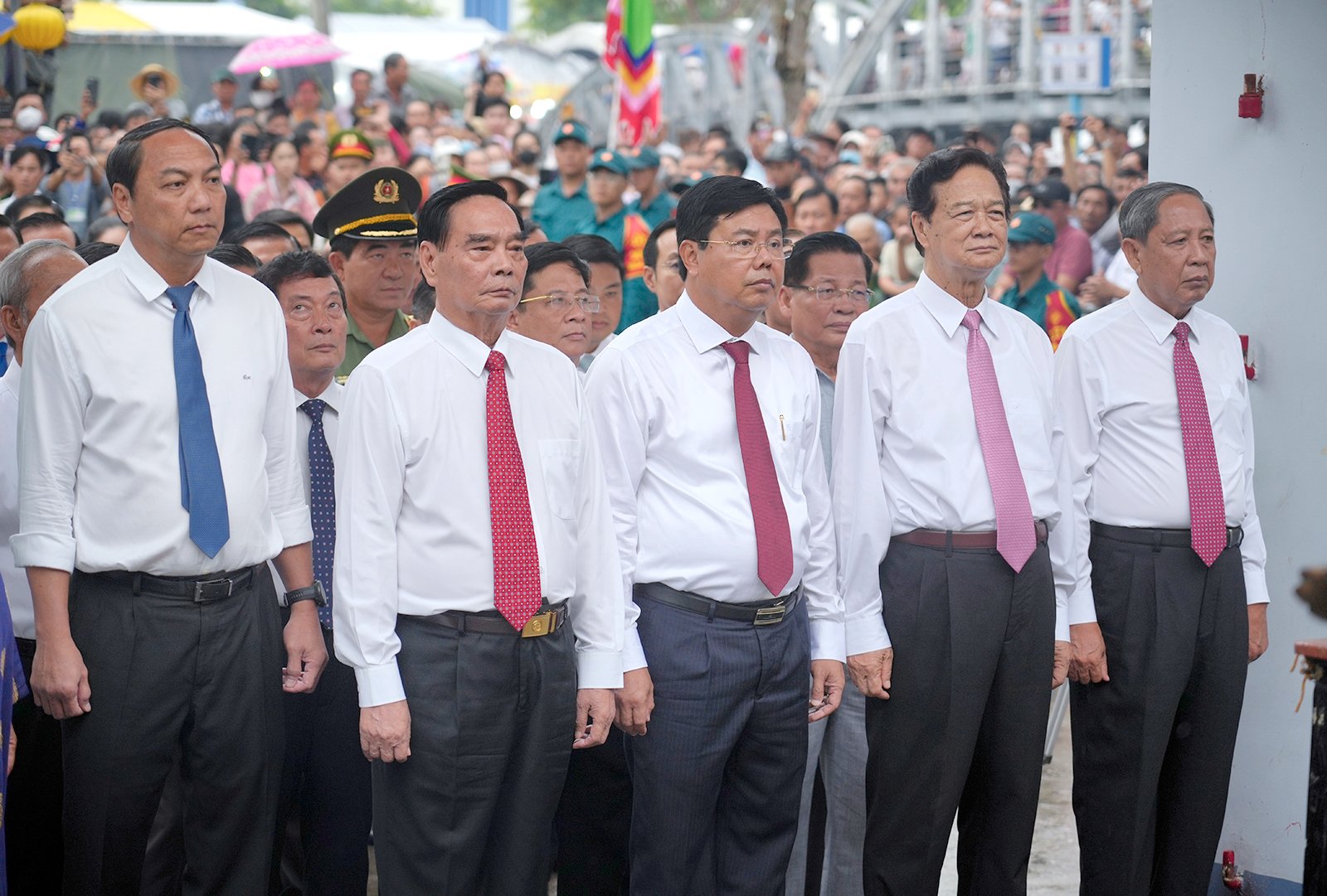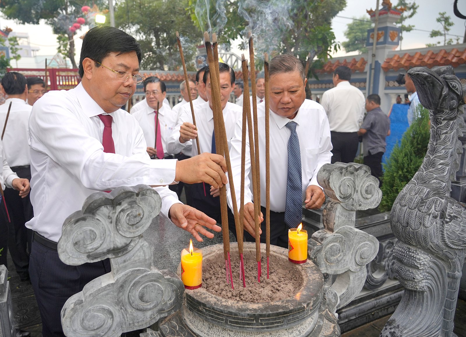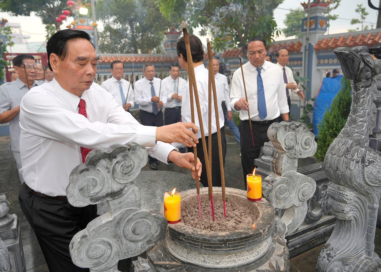 Dalam suasana khidmat, para delegasi membakar dupa untuk mengenang jasa besar Pahlawan Nasional Nguyen Trung Truc - putra bangsa Vietnam yang luar biasa, yang menjunjung tinggi semangat patriotisme, kesetiaan, dan kegigihan dalam perjuangan melawan penjajah asing dengan sumpah abadi: "Ketika Barat telah mencabut semua rumput di Selatan, maka Selatan tidak akan lagi melawan Barat."
