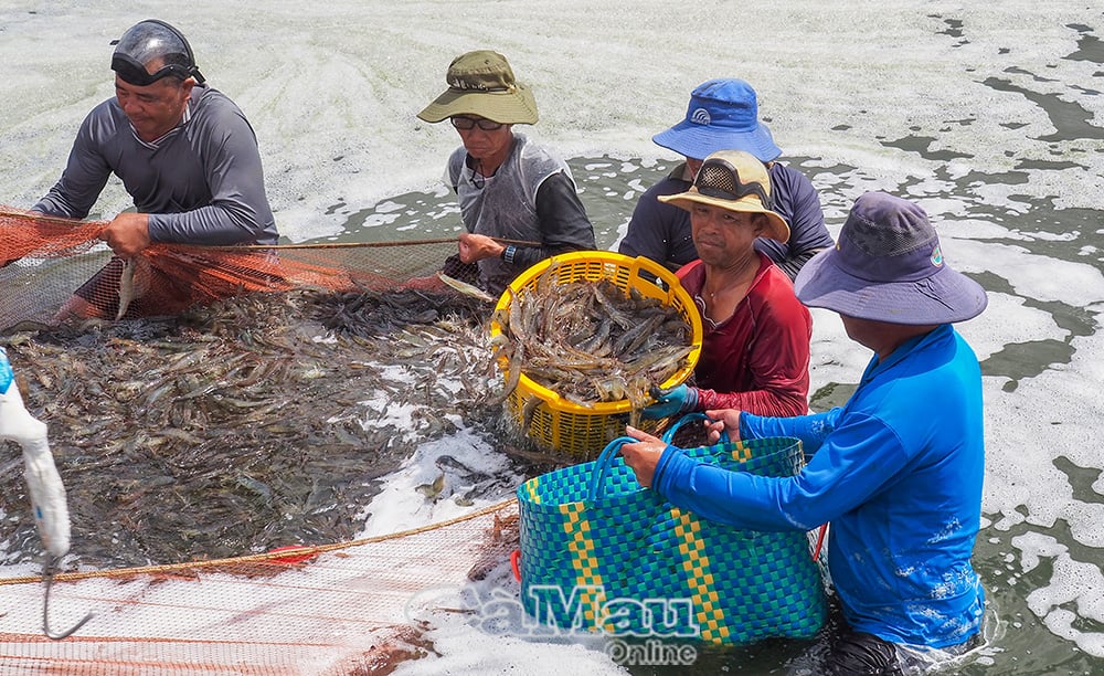 Provinsi Ca Mau telah meningkatkan pelatihan dan bimbingan bagi masyarakat tentang proses pertanian super-intensif dengan sedikit penggantian air, pertanian siklus tertutup (RAS), dan proses budidaya udang yang mengurangi biaya dan meningkatkan produktivitas. (Dalam foto: Panen udang di dusun Tan Loi A, kelurahan Ta An Khuong).