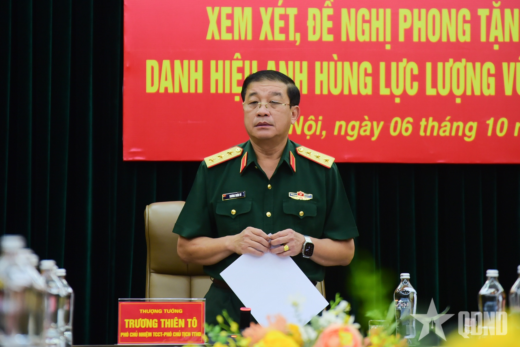 Letnan Jenderal Senior Truong Thien To memimpin rapat untuk mempertimbangkan dan mengusulkan penganugerahan dan pemberian gelar Pahlawan Angkatan Bersenjata Rakyat secara anumerta. |