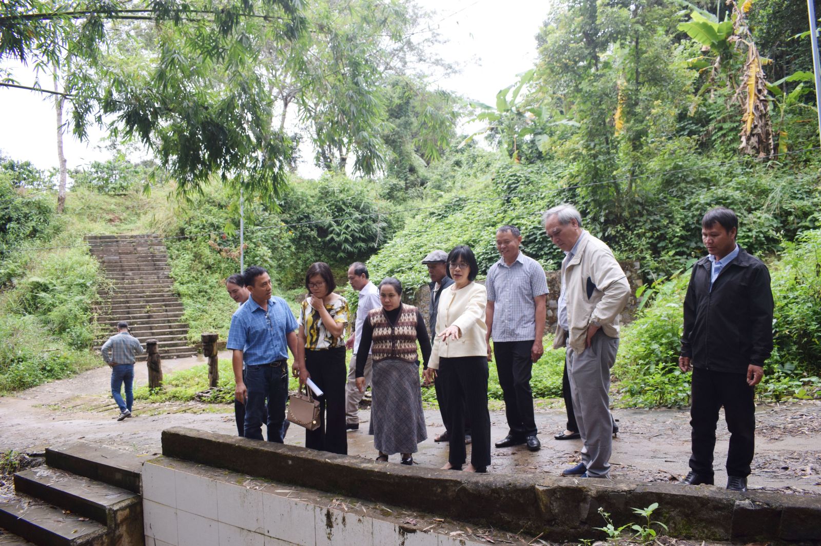 Wakil Ketua Komite Rakyat Provinsi Nguyen Thi Thanh Lich dan delegasi kerja melakukan survei lapangan di area Tomb House, Desa Ia Nueng.
