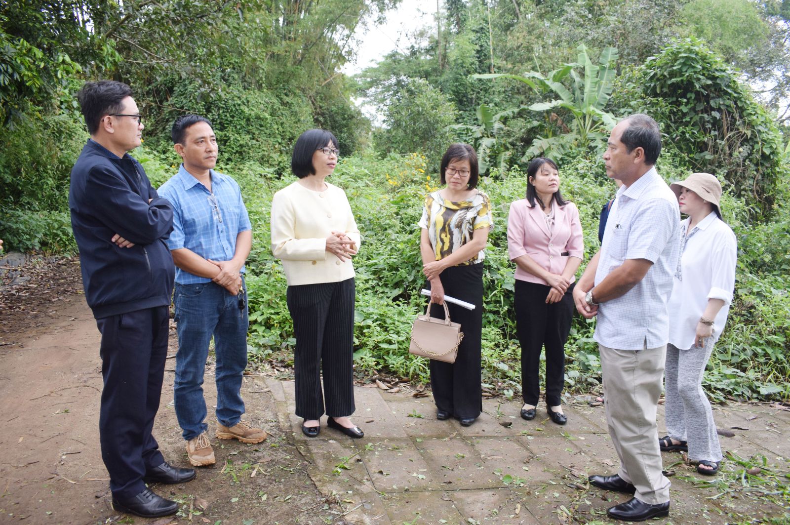 Wakil Ketua Komite Rakyat Provinsi Nguyen Thi Thanh Lich dan delegasi kerja melakukan survei lapangan di daerah Water Drop, desa Ia Nueng.