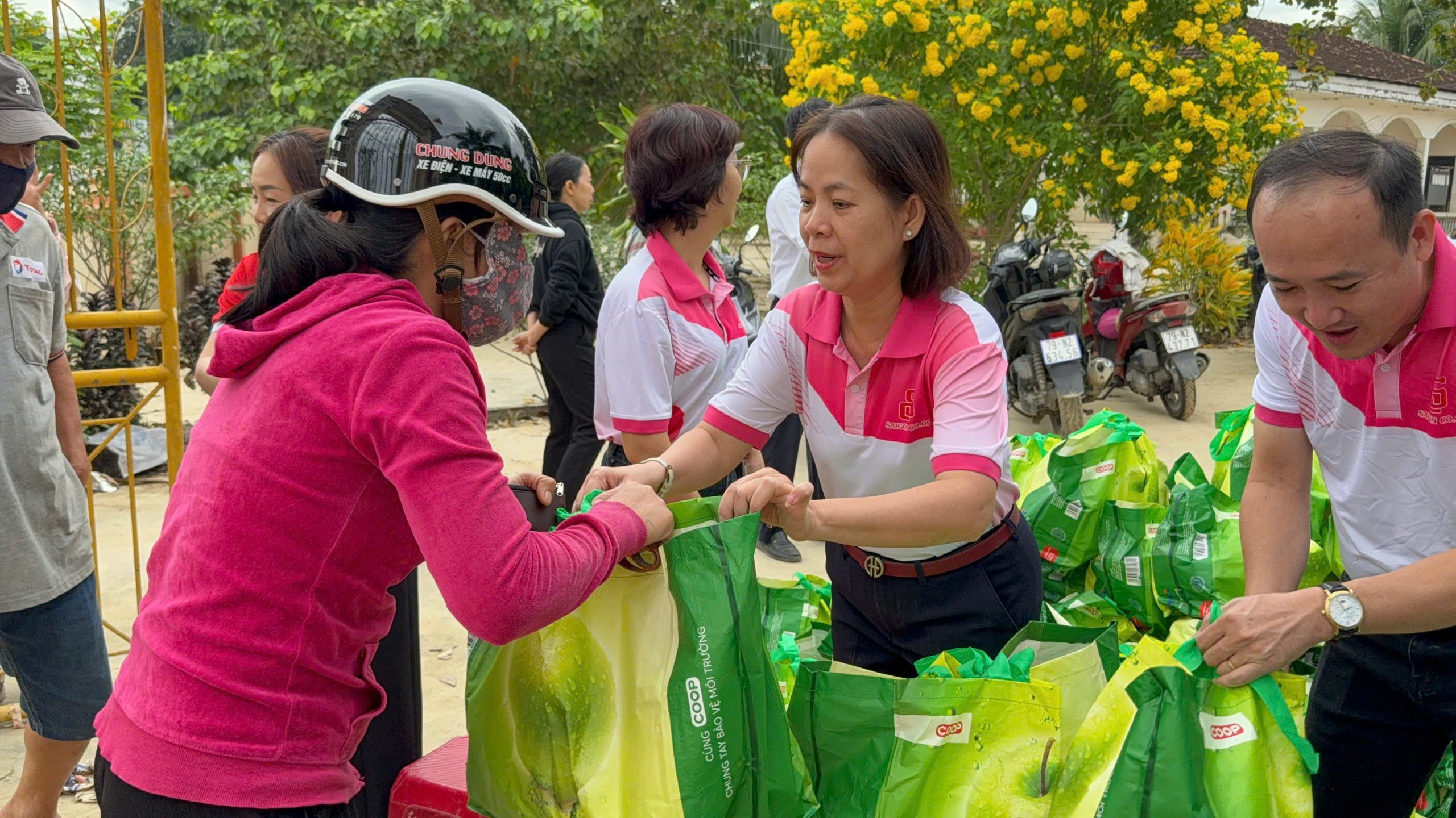 Semangat gotong royong "Satu untuk semua - Semua untuk satu" menyebar luas di Saigon Co.op. Co.opmart Hue secara pribadi membungkus 300 banh tet dan mengirimkannya ke Quy Nhon, An Nhon, Tuy Hoa sebagai penyemangat hangat di musim hujan yang dingin. Di Quy Nhon, meskipun mengalami kerusakan parah akibat Badai No. 13 dan banjir pada 18-22 November, dewan direksi supermarket segera mengerahkan staf ke Tuy Hoa untuk mendukung pembukaan kembali pada pagi hari tanggal 23 November.