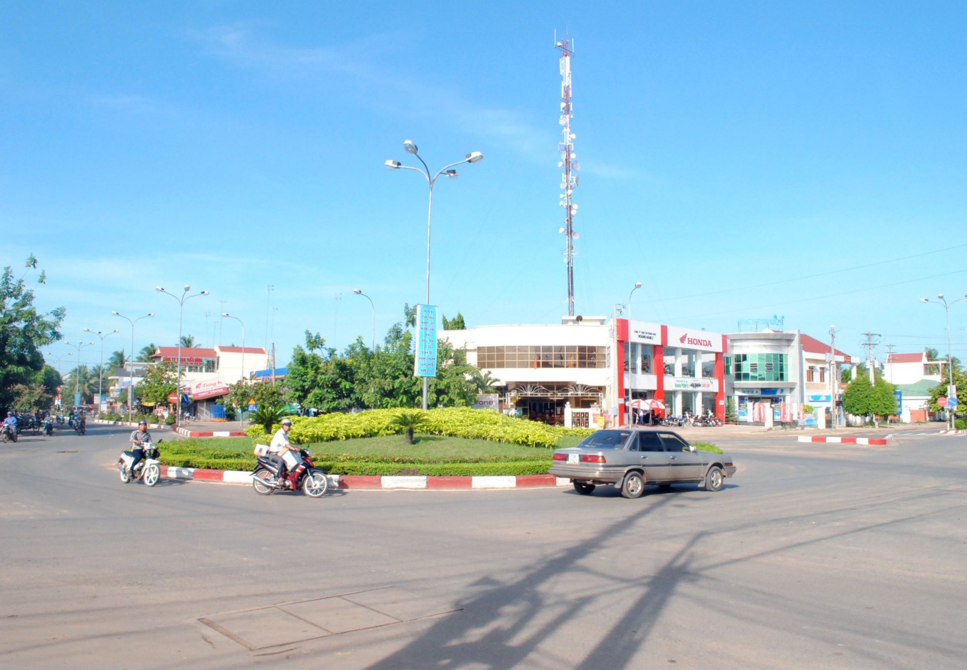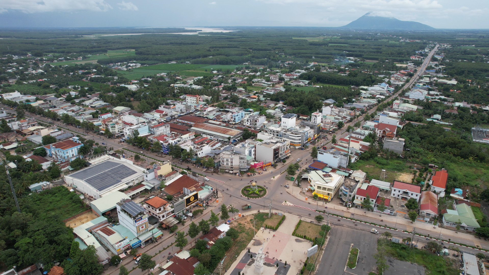 Pusat kota Tan Chau saat ini terlihat dari atas.