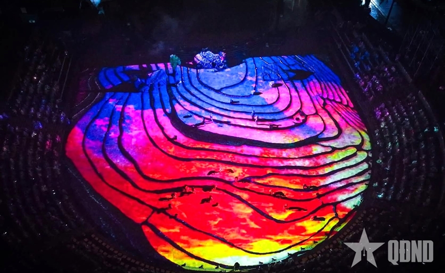 Teknologi dan pencahayaan membawa penonton ke ruang ajaib yang menyoroti hamparan sawah terasering Sa Pa. |