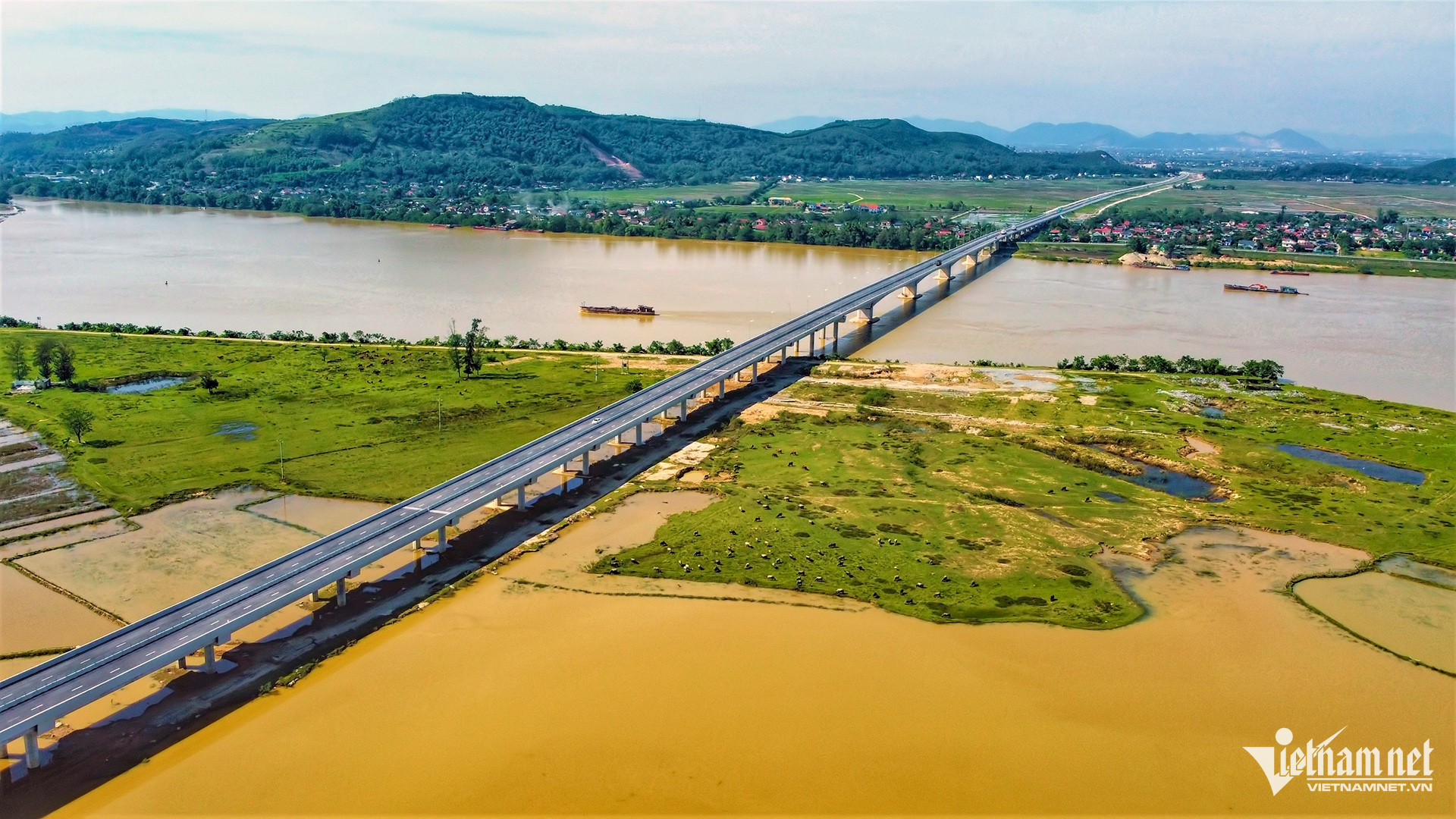 Jalan Tol Dien Chau-Bai Vot, ruas yang melewati Jembatan Hung Duc-Jembatan Lam River, memiliki panjang lebih dari 4 km. Foto: Nguyen Duong