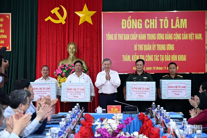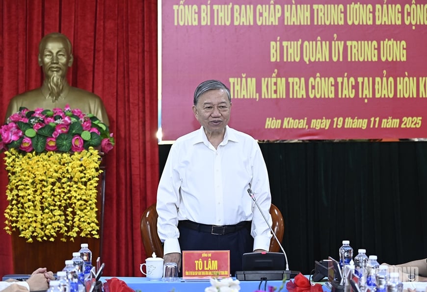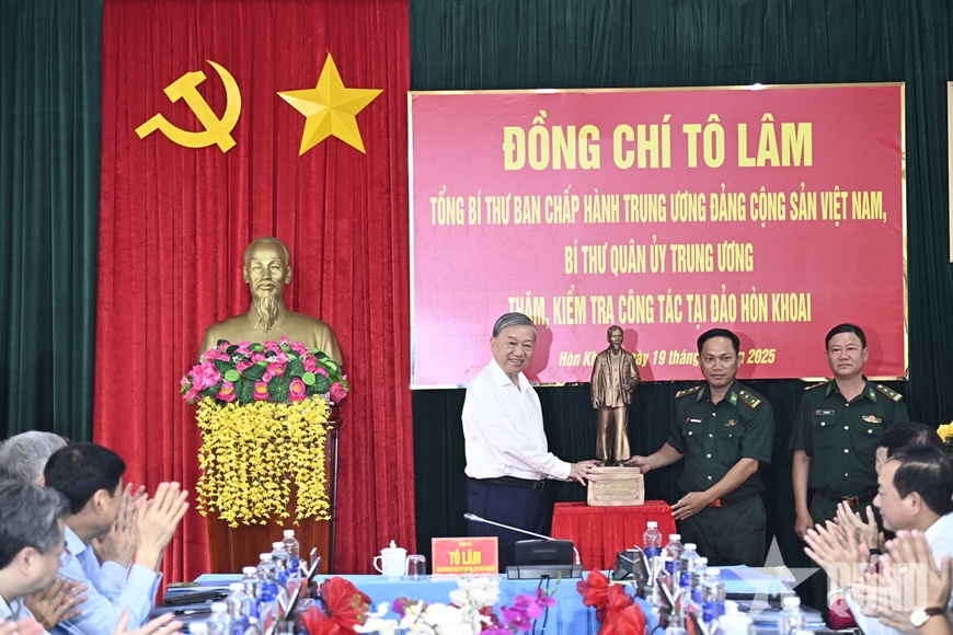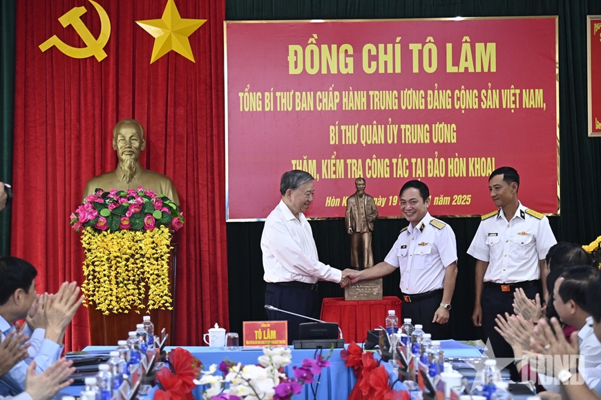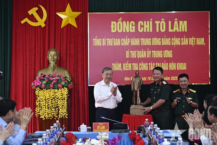 Menurut Sekretaris Jenderal, kita perlu secara konsisten membuat komitmen suci bagi tanah ini. Hon Khoai bukan sekadar proyek, melainkan sumpah nasional, sebuah langkah maju menuju Vietnam yang bercita-cita tinggi dan mandiri. Tugas mendesak ini besar, waktunya mendesak, kondisinya berat, tetapi semangat Vietnam tak pernah menyerah. Kesulitan hanyalah ujian badai, hanya kemauanlah yang menjadi kekuatan dan keputusan. Sekretaris Jenderal menekankan: Seluruh perwira dan prajurit kita harus meningkatkan kekuatan dan semangat prajurit Paman Ho, bertekad untuk menyelesaikan rencana yang telah ditetapkan. Lakukan dengan cepat tetapi tidak ceroboh, lakukan dengan susah payah tetapi tidak putus asa. Lakukan lebih sedikit dan lakukan dengan benar, lakukan lebih banyak dan lakukan dengan benar. Hon Khoai memanggil kita untuk terus maju. Para perwira, prajurit, dan pekerja di pulau ini harus mengingat hal ini: Setiap jam kerja adalah satu inci kedaulatan. Setiap jembatan, setiap dermaga laut adalah tanda gemilang Tanah Air. Jangan goyah dalam kesulitan; jangan melambat dalam badai. Sesulit apa pun, kita harus melakukannya. Karena kami tidak hanya membangun pelabuhan, tetapi juga posisi negara di lautan. Kami tidak hanya membuka pulau-pulau, tetapi juga membuka jalan bagi masa depan Vietnam.