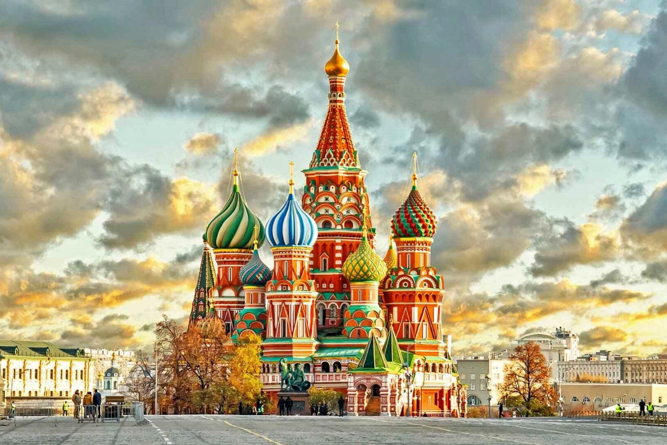 Katedral St. Basil adalah salah satu tujuan wisata Rusia paling terkenal di dunia . Dengan arsitektur unik sembilan kubah berwarna-warni, bangunan ini dibangun pada abad ke-16 atas perintah Ivan yang Mengerikan untuk memperingati kemenangan atas bangsa Mongol.