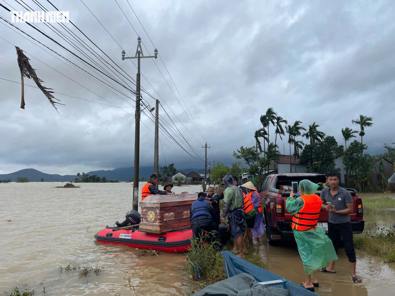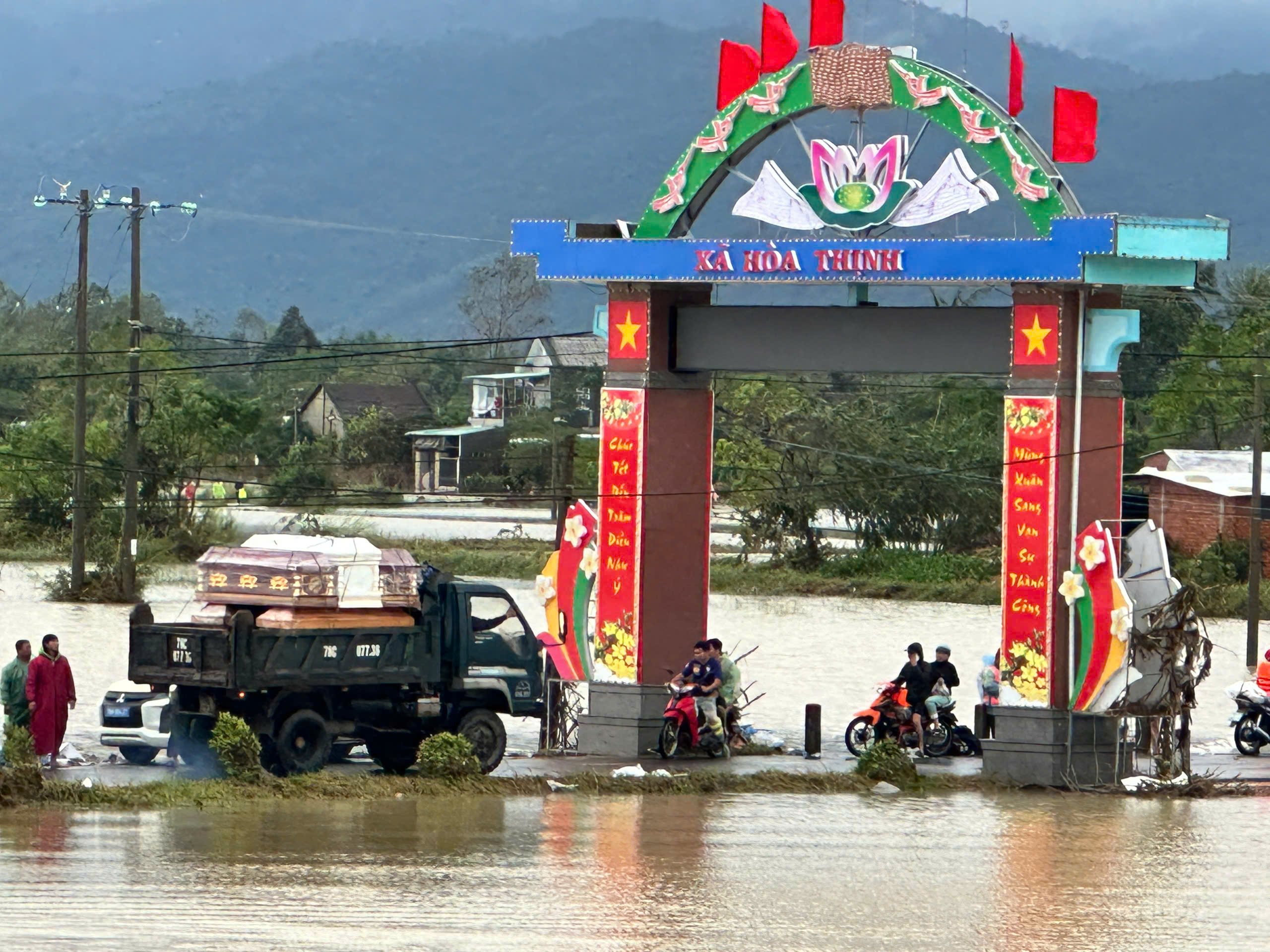 Sebelumnya, wartawan Thanh Nien hadir di balai desa Phu Huu, komune Hoa Thinh, dan melihat 4 peti mati sudah ada di sana. Keluarga korban telah tiba, tetapi tidak ada kendaraan untuk mengangkut peti mati ke rumah untuk dimakamkan. Wartawan Thanh Nien menghubungi tim penyelamat untuk meminta bantuan. Namun, setelah kendaraan tersebut berjalan beberapa langkah, kendaraan tersebut mencapai daerah banjir yang dalam, sehingga mereka harus memindahkan peti mati ke perahu untuk melanjutkan perjalanan ke rumah korban.