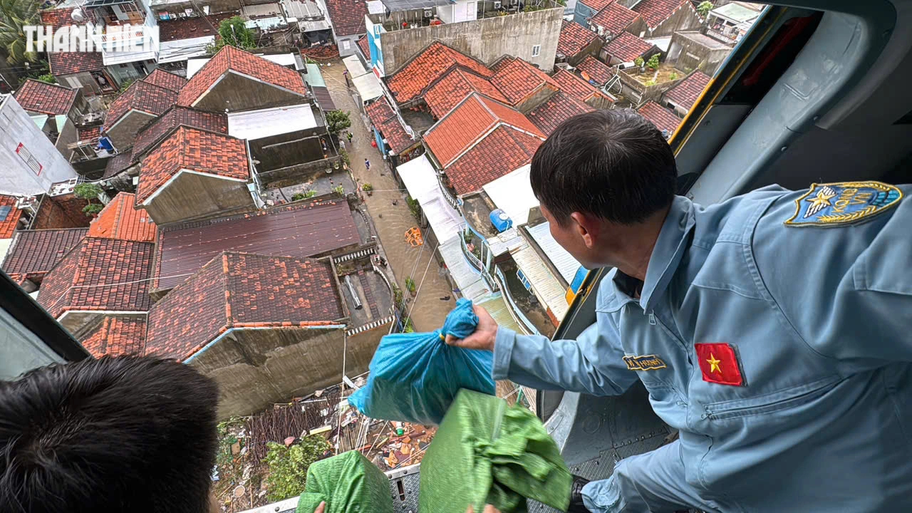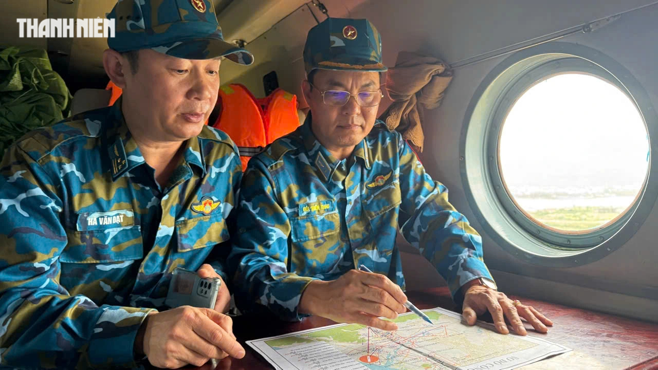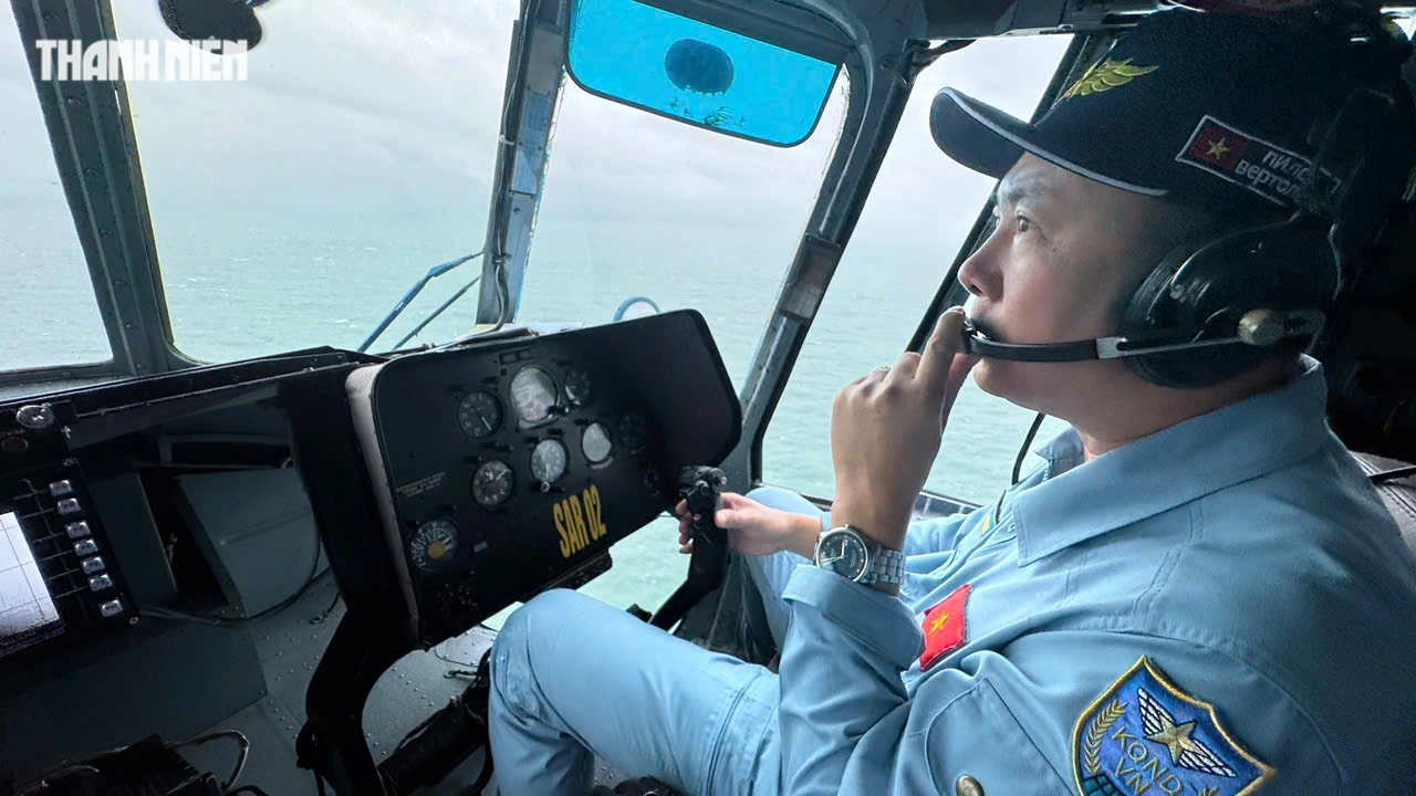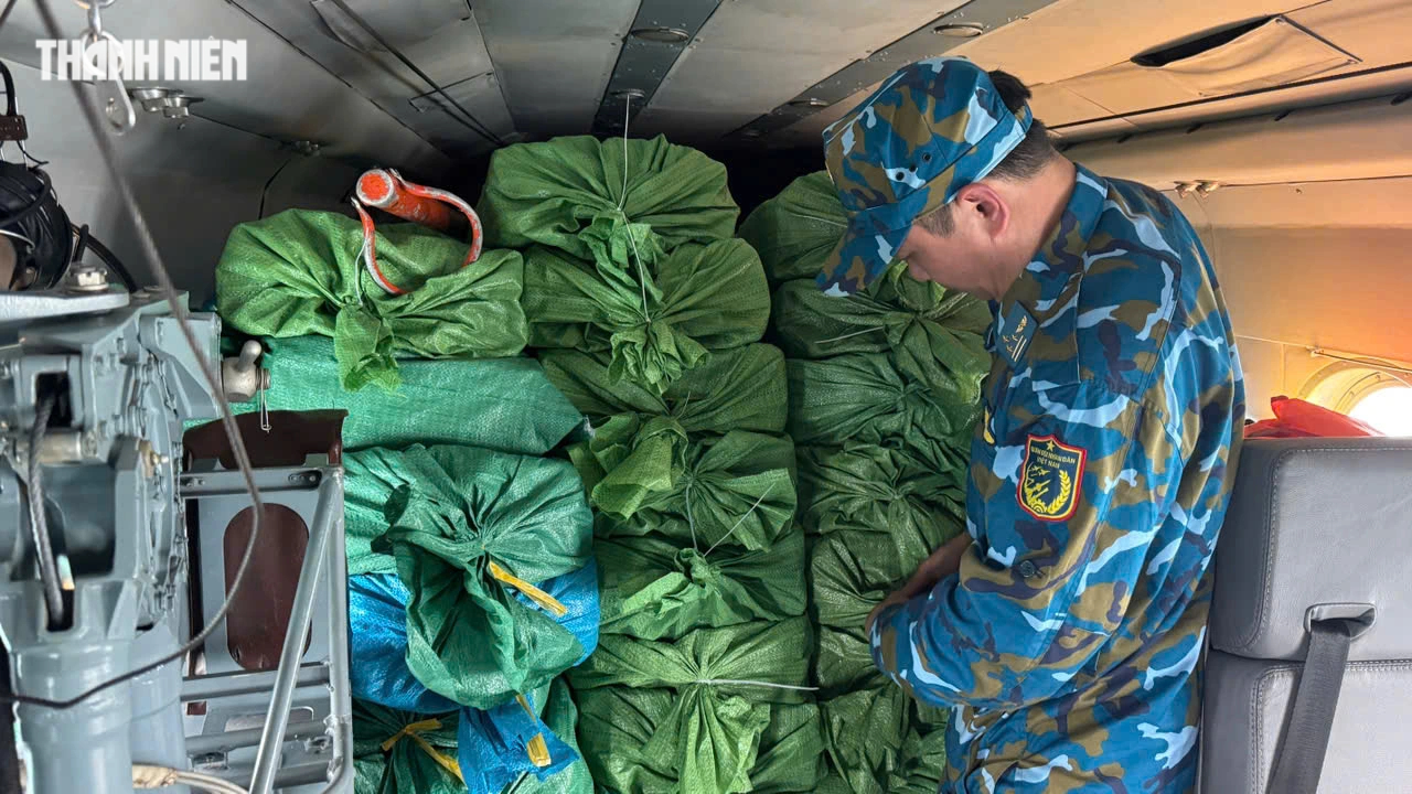 Helikopter militer menjatuhkan pasokan bantuan: Reporter Thanh Nien naik helikopter SAR-02