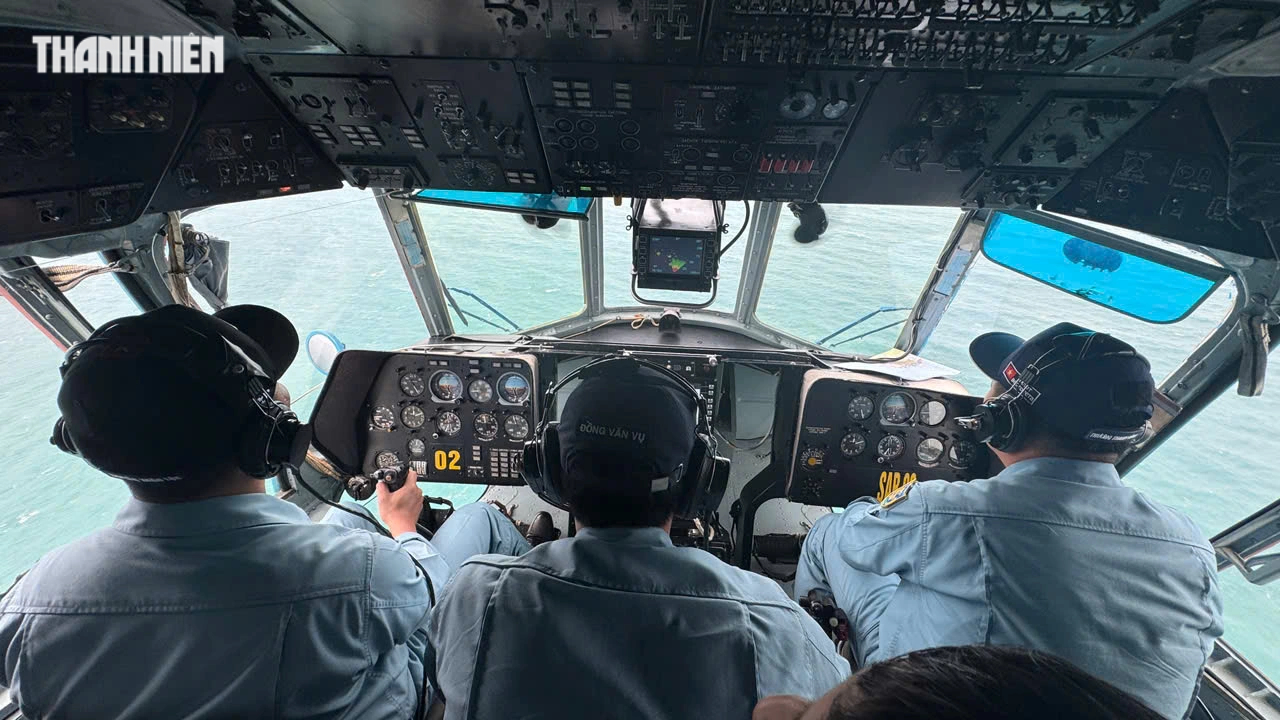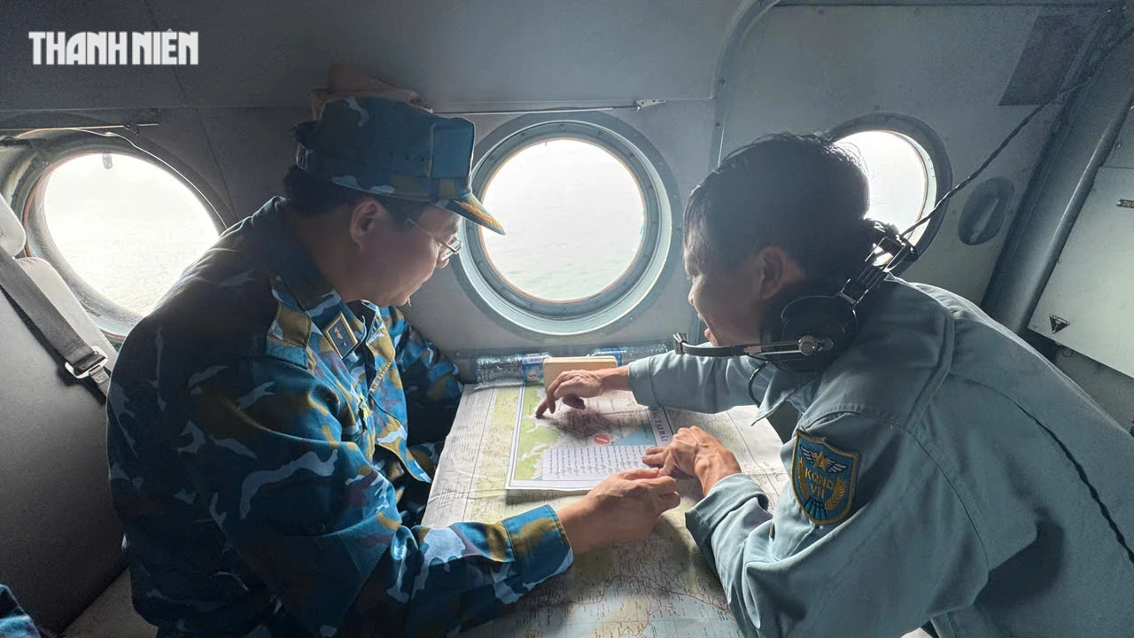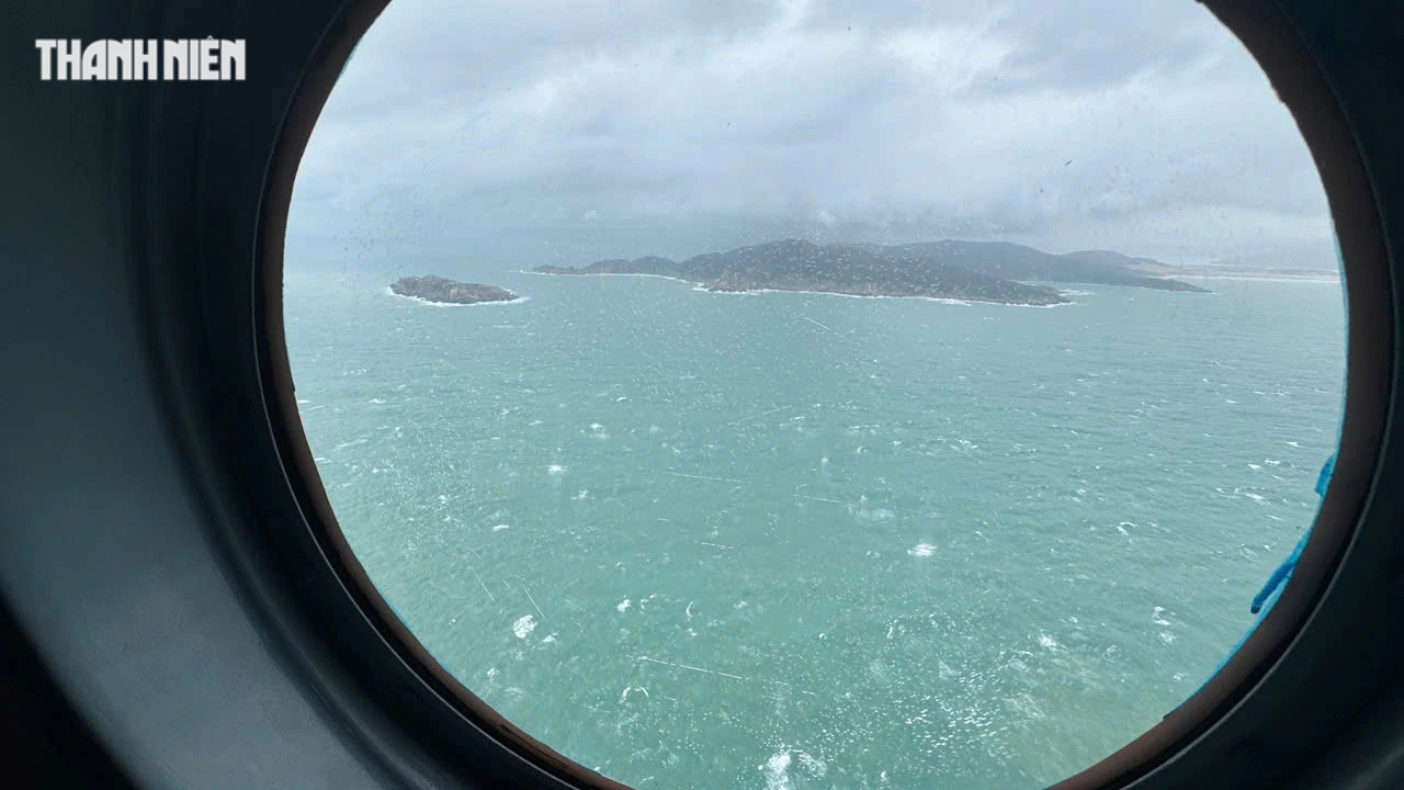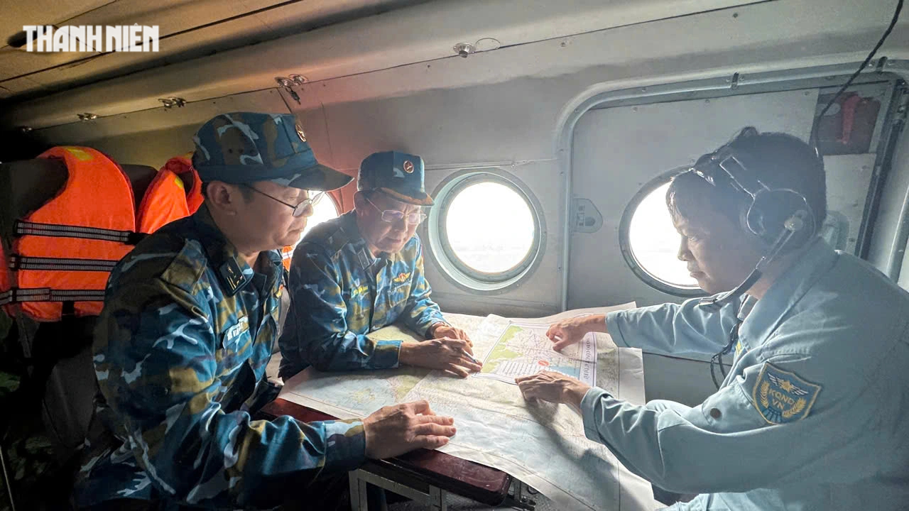 Helikopter militer menjatuhkan pasokan bantuan: Reporter Thanh Nien naik helikopter SAR-02