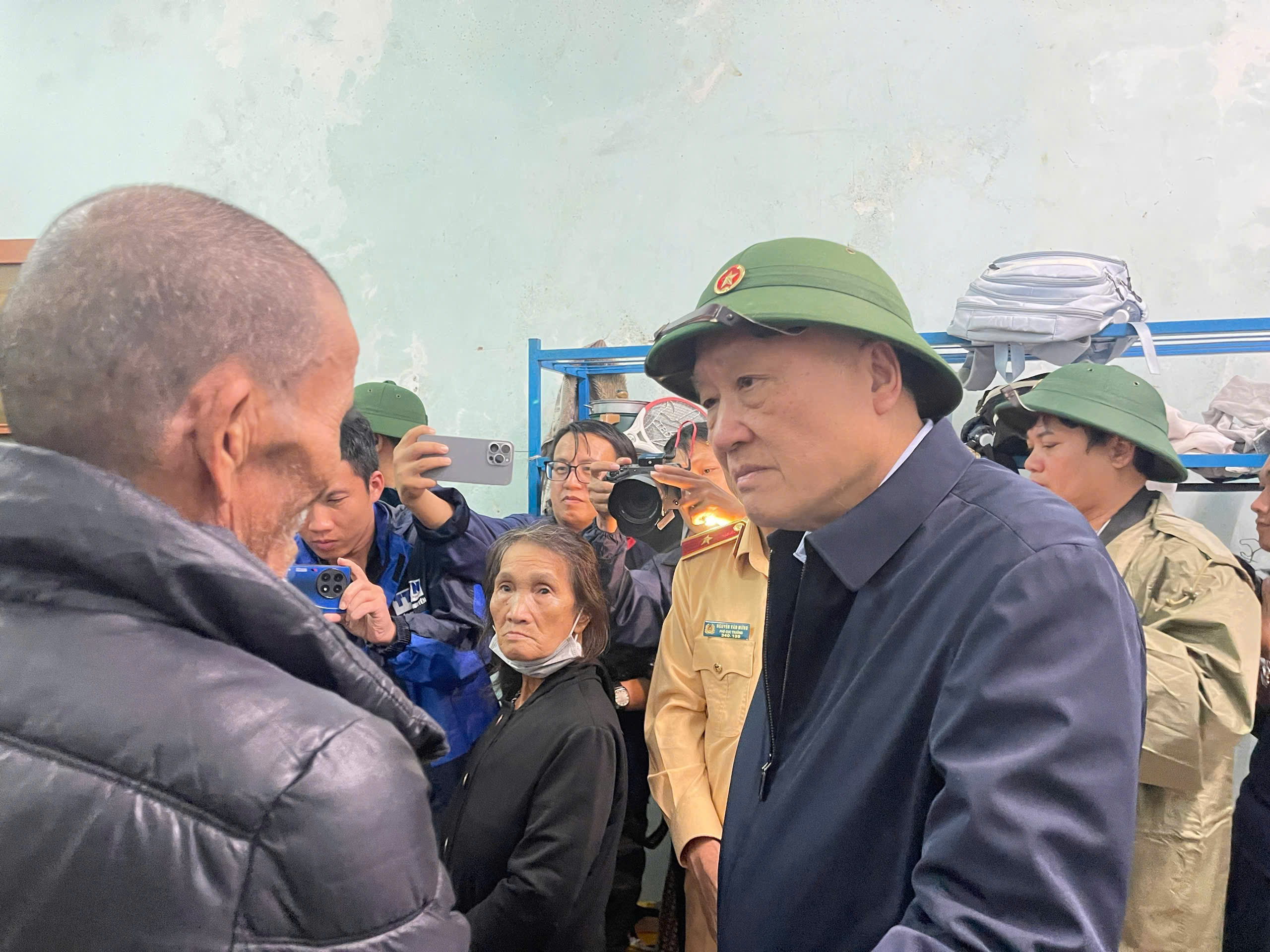 Jenderal Phan Van Giang terjun ke daerah banjir untuk memberikan semangat kepada warga yang terkena dampak.
