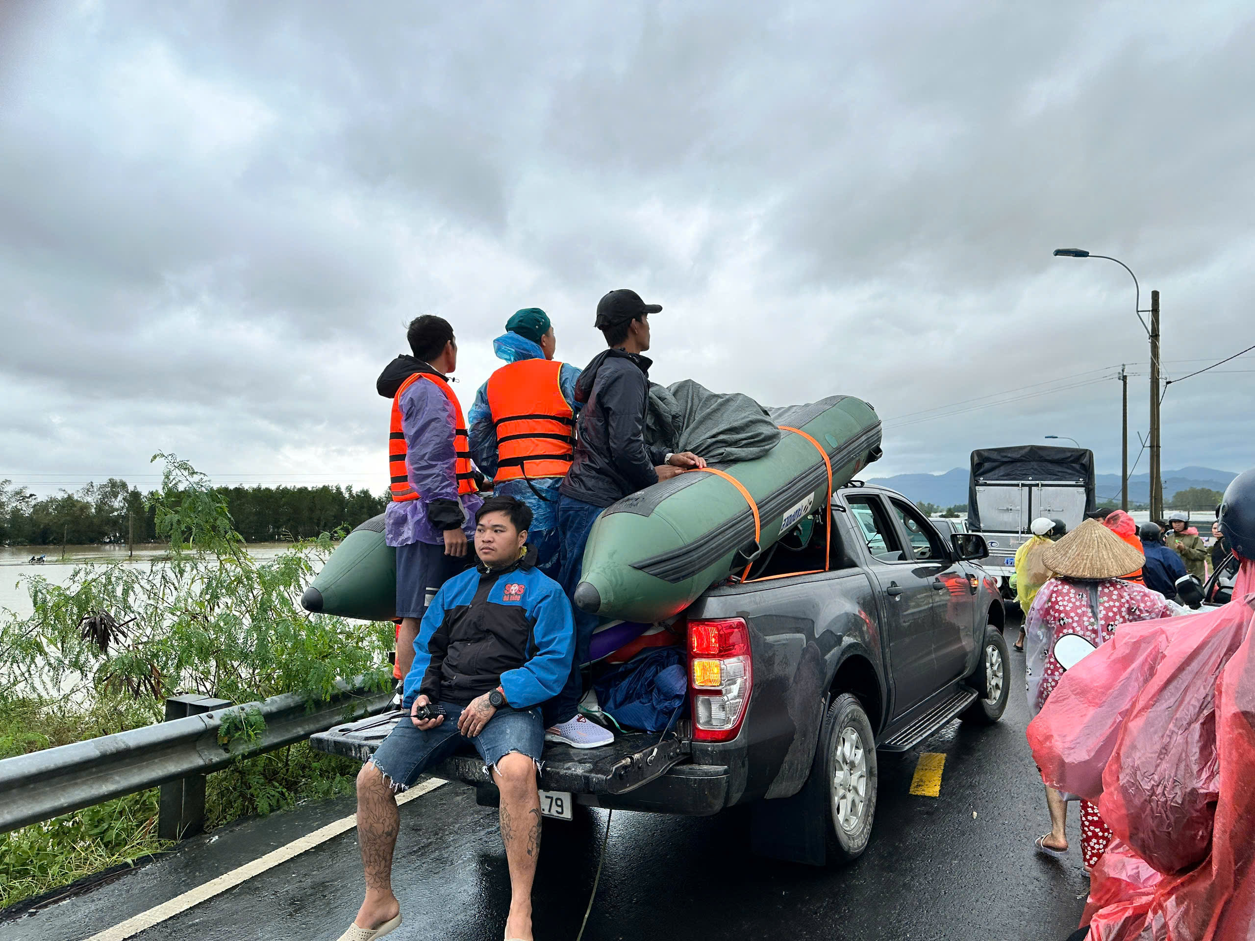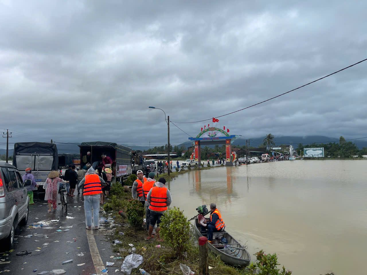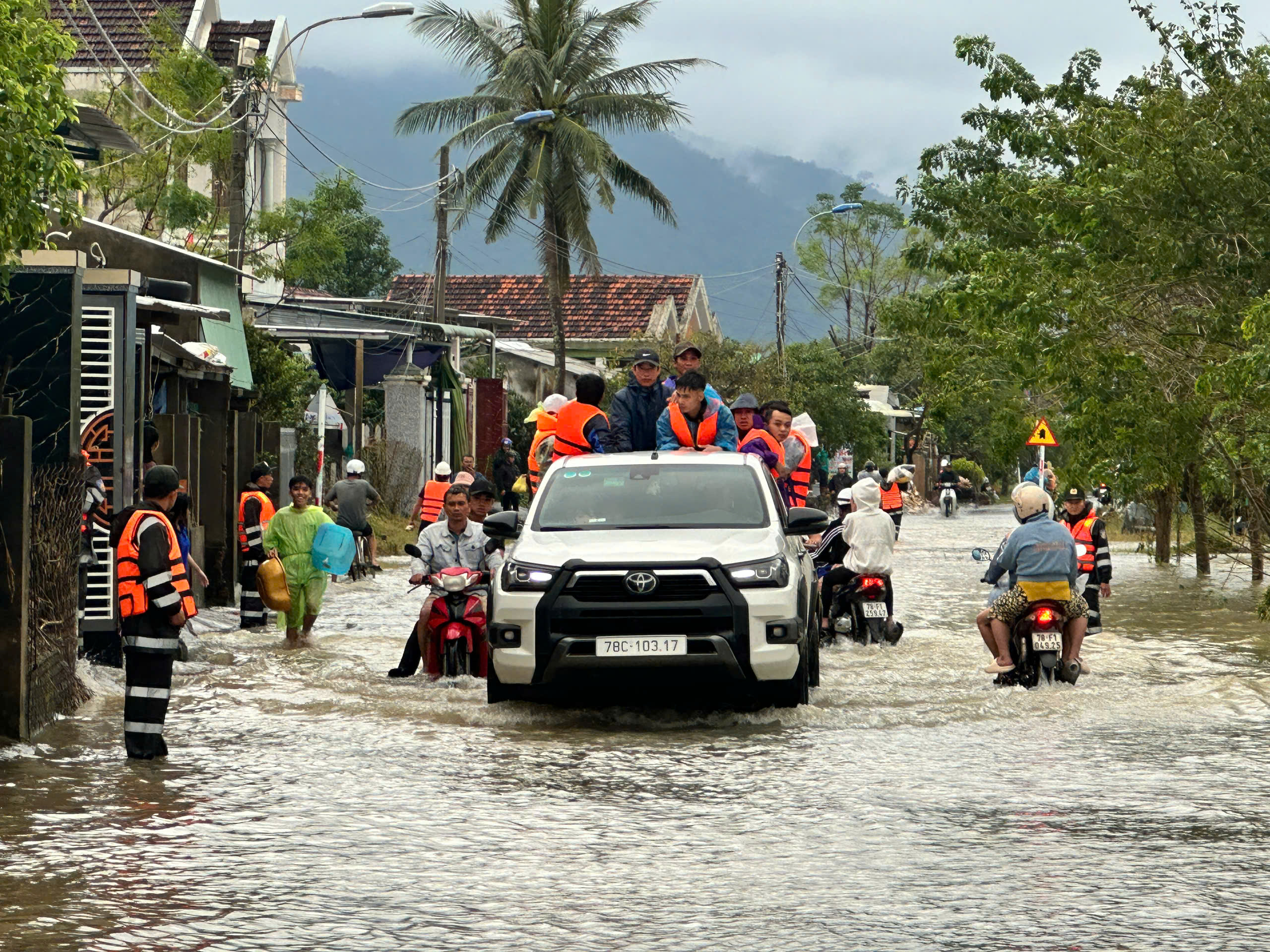 Pada siang hari tanggal 22 November, akses ke Desa Quy Hau, Kecamatan Tuy Hoa, masih terputus oleh banjir. Warga harus mengarungi air untuk mencapai Jalan Raya 1. Sekelompok relawan menggunakan drone untuk mengirimkan makanan kepada warga di sana.