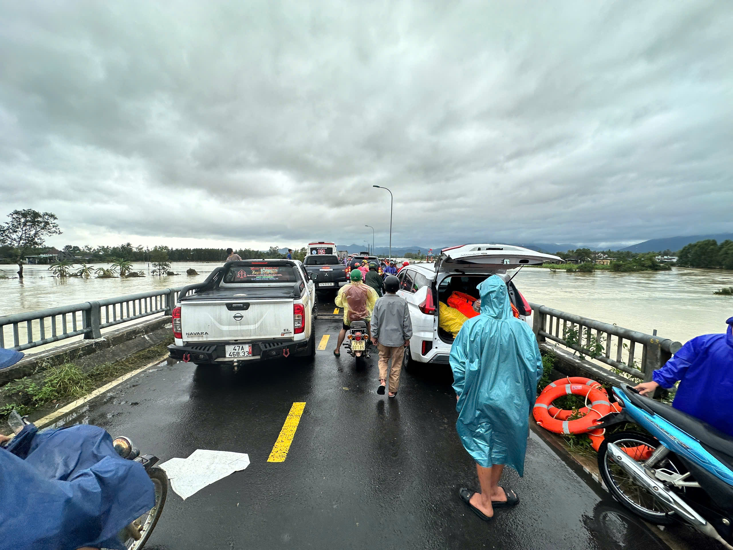 Pada pagi hari tanggal 22 November, berbincang dengan reporter Thanh Nien , Letnan Kolonel Vu Thanh Giang, Kepala Departemen Kepolisian Lalu Lintas Kepolisian Provinsi Quang Ngai, mengatakan bahwa pada malam hari tanggal 21 November, satuan tugas Departemen Kepolisian Lalu Lintas Kepolisian Provinsi Quang Ngai telah mendatangi rumah-rumah yang terendam banjir dan segera menyelamatkan 23 lansia, anak-anak, dan penyandang disabilitas di Komune Hoa Xuan (Provinsi Dak Lak) dari zona bahaya. Selain itu, mereka juga menyediakan air minum dan makanan bagi 37 rumah tangga yang terendam banjir.