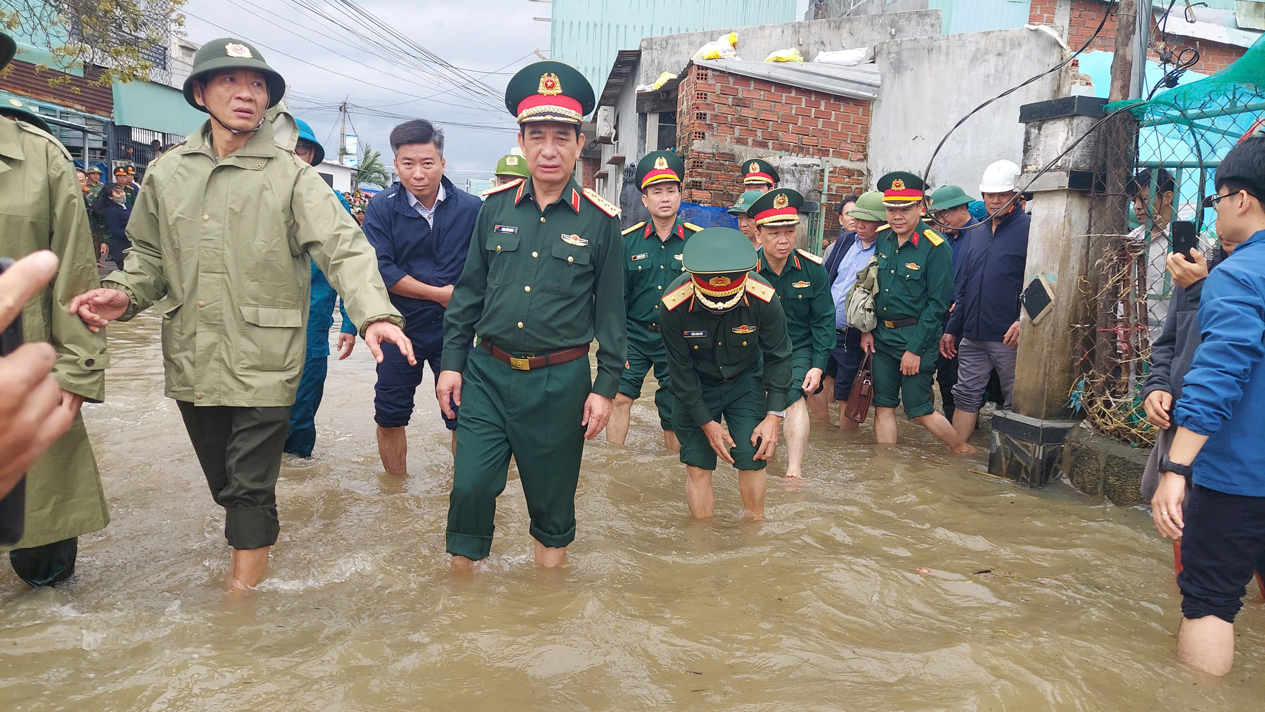 Pada pagi hari tanggal 22 November, Jenderal Phan Van Giang (Anggota Politbiro, Wakil Sekretaris Komisi Militer Pusat, Menteri Pertahanan Nasional) mengunjungi dan memeriksa warga di Desa Lac Dien, Kecamatan Tuy Phuoc Dong (sebelumnya Distrik Tuy Phuoc Dong, Provinsi Binh Dinh). Di sini, pagi ini, air belum surut di beberapa daerah.