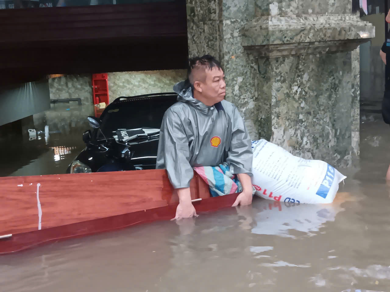 Meskipun ada upaya untuk mencegahnya dengan bahan-bahan buatan sendiri, air masih membanjiri ruang bawah tanah banyak rumah di jalan Tran Duy Hung.