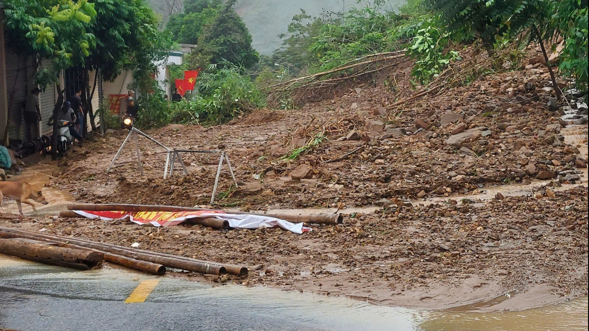 Selain itu, ruas Jalan Raya Nasional 15C yang melalui kecamatan Muong Lat (Thanh Hoa) juga sempat mengalami longsor di satu titik, sejumlah besar tanah dan batu tersebar di permukaan jalan dan mendekati rumah-rumah warga.