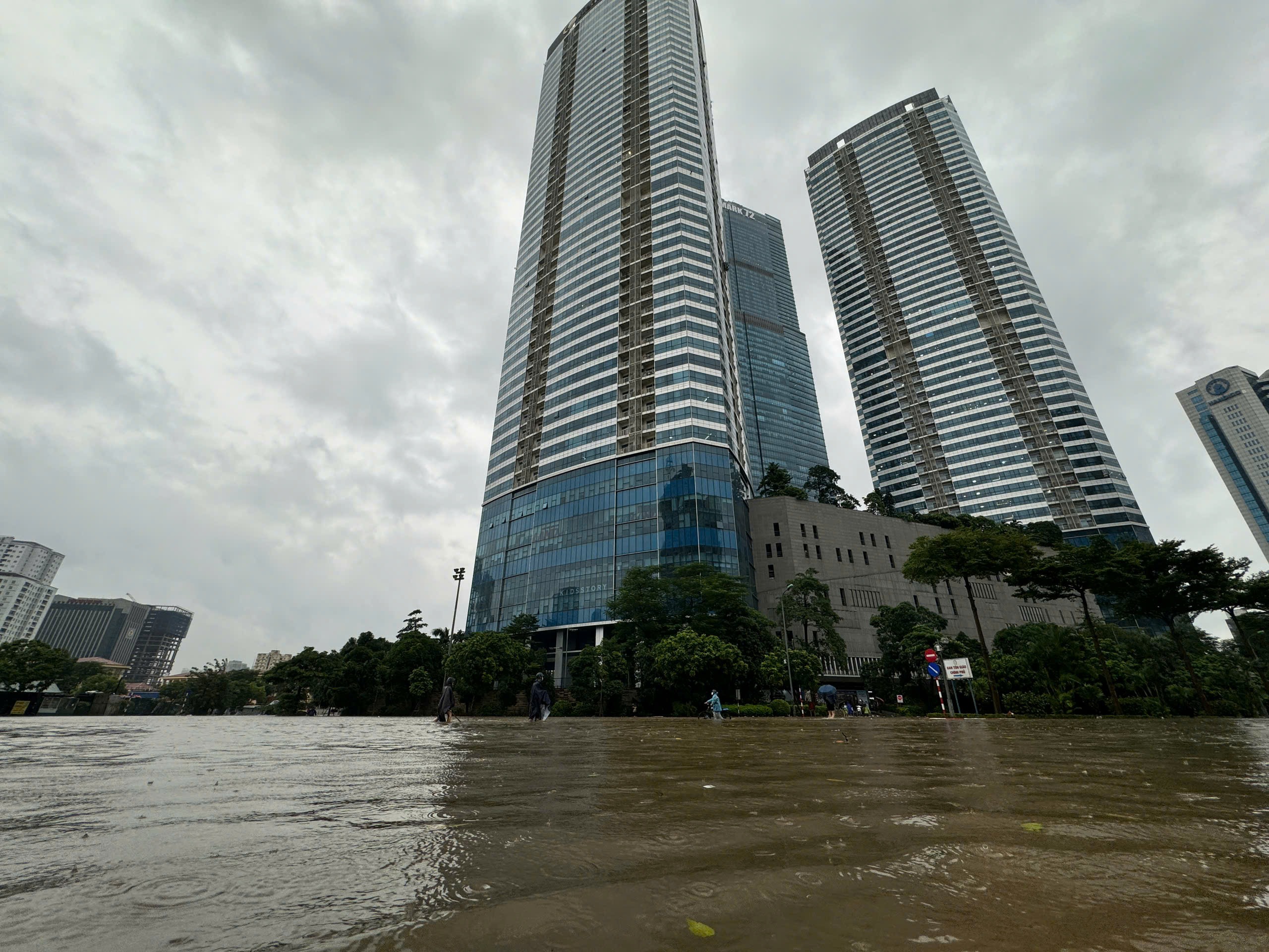Jalan Nguyen Co Thach (Tu Liem, Hanoi) terendam banjir besar.