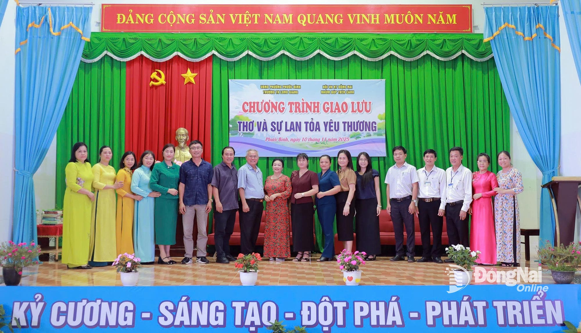 | Perwakilan Asosiasi Sastra dan Seni Provinsi Dong Nai , Komite Rakyat Distrik Phuoc Long, guru, dan orang tua di acara Pertukaran Puisi dan Cinta. Foto: Linh Tam |