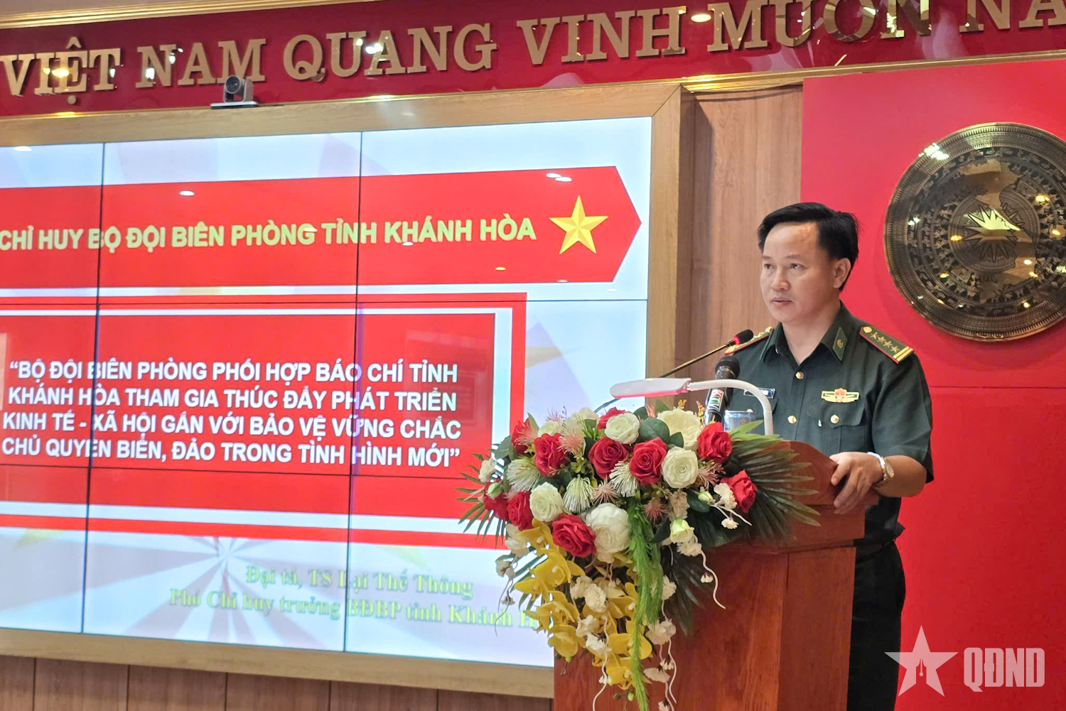 | Kolonel, Dr. Lai The Thong, Wakil Komandan Komando Penjaga Perbatasan Provinsi Khanh Hoa menyampaikan pidato. |