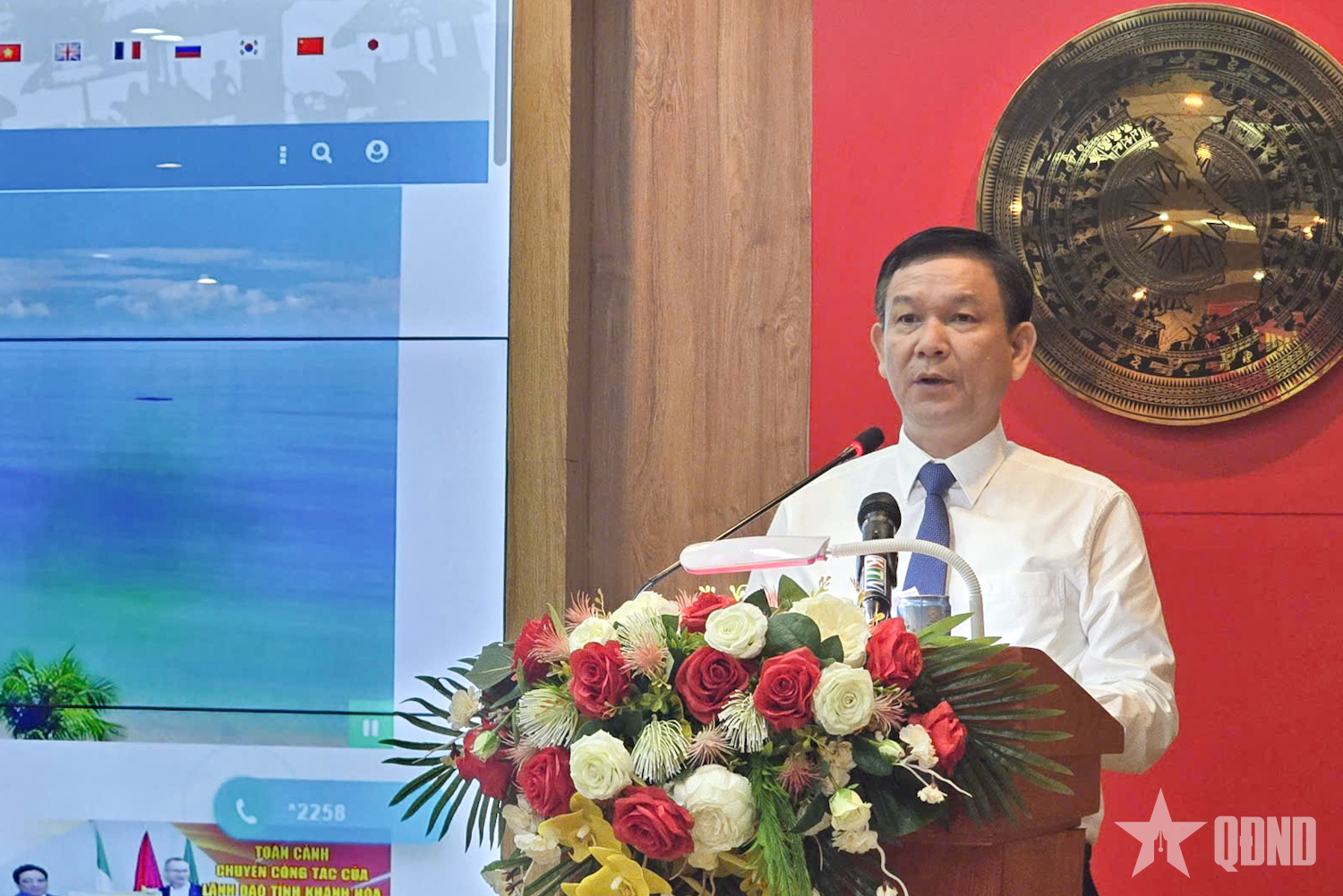| Jurnalis Pham Duc Thai, Kepala Departemen, Direktur Pusat Informasi dan Penelitian Ilmiah, Rumah Penerbitan Politik Nasional, Truth, menyampaikan laporan media tentang pariwisata Khanh Hoa. |