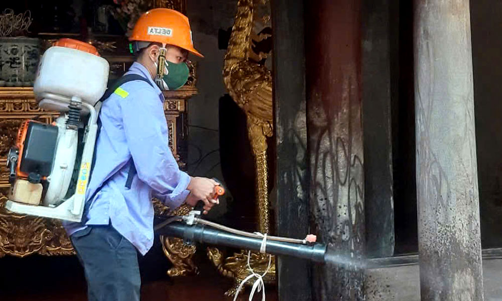 Pada pagi hari tanggal 16 Oktober, tim penyemprot disinfeksi komune berkoordinasi dengan milisi, anggota serikat pemuda, dan tenaga medis untuk menyemprot pestisida di tempat-tempat ramai seperti sekolah, balai adat, rumah ibadah, pagoda, pasar, jalan, dan permukiman di sepanjang Sungai Cau. Pada pagi hari tersebut, lebih dari 400.000 meter persegi area tersebut disemprot dengan Kloramin B.