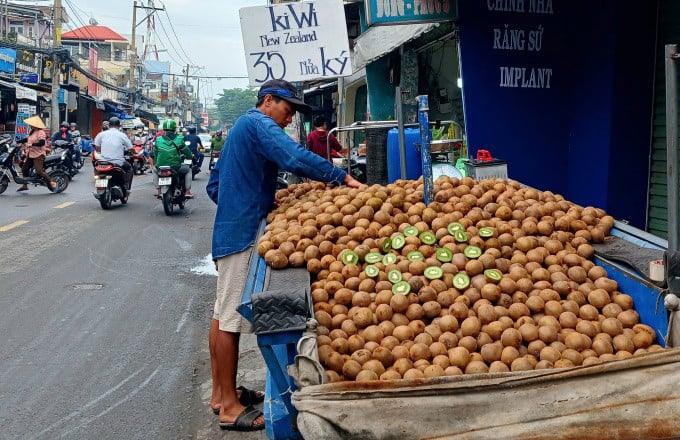 ホーチミン市トゥドゥック農産物市場隣でキウイの卸売業者を務めるタン・ホアさんは、今年はこの品種がここ数年で最も安くなっていると語った。「毎回何千箱も輸入しているので、価格は非常に安いです。おかげで、店舗向けの卸売価格は1キログラムあたり2万~3万ドンです」とタン・ホアさんは語った。