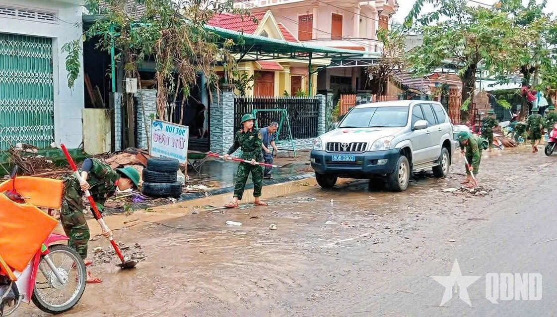 浸水地域では、兵士たちは地元部隊と連携し、泥や土砂の除去、道路の伐採、倒木の回収、排水路の浚渫、そして家屋、学校、 医療施設の清掃支援を行いました。多くの作業グループが、浸水被害に遭った住宅地に移動式機材を搬入し、人々の生活の安定を支援しました。
