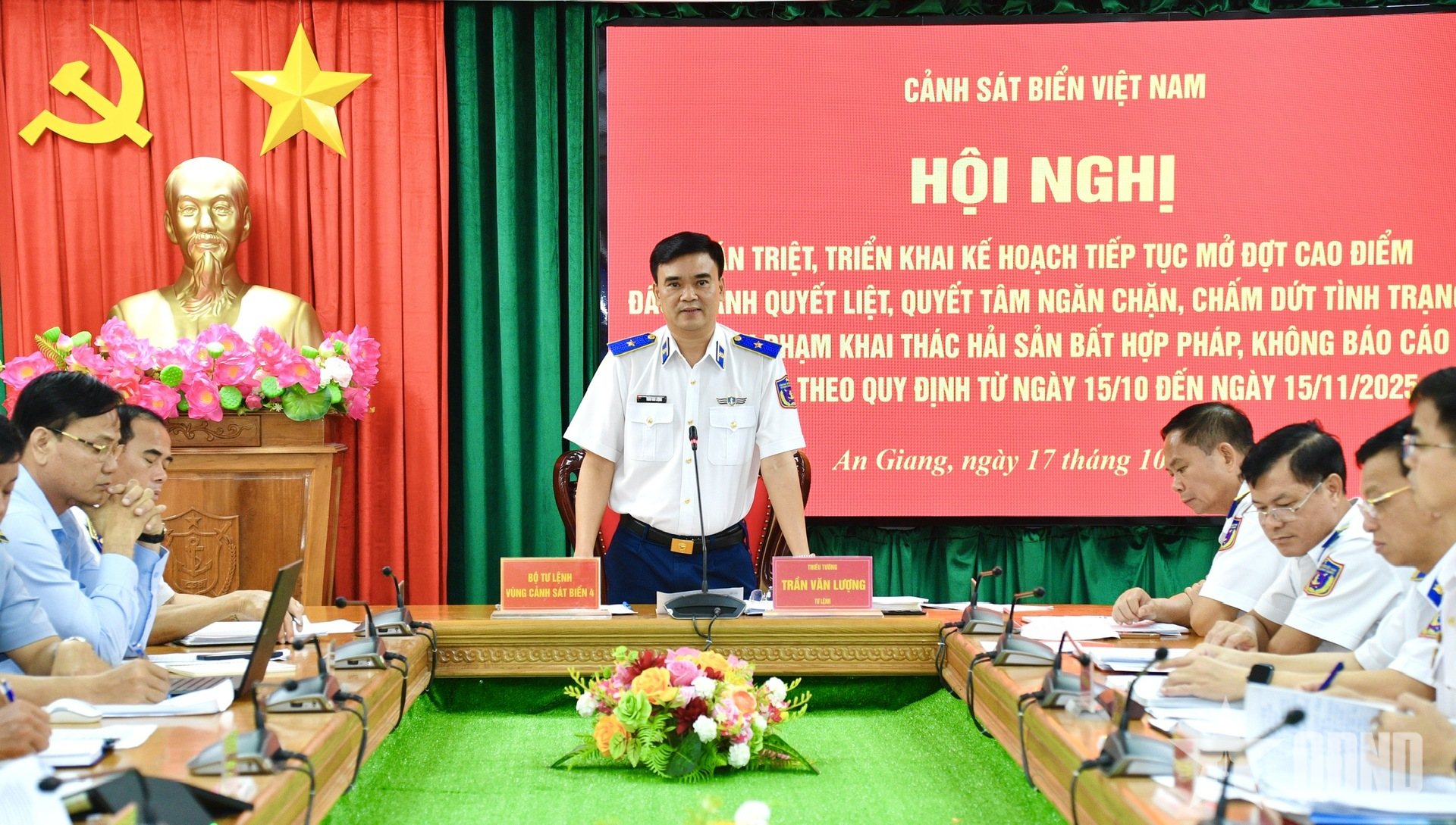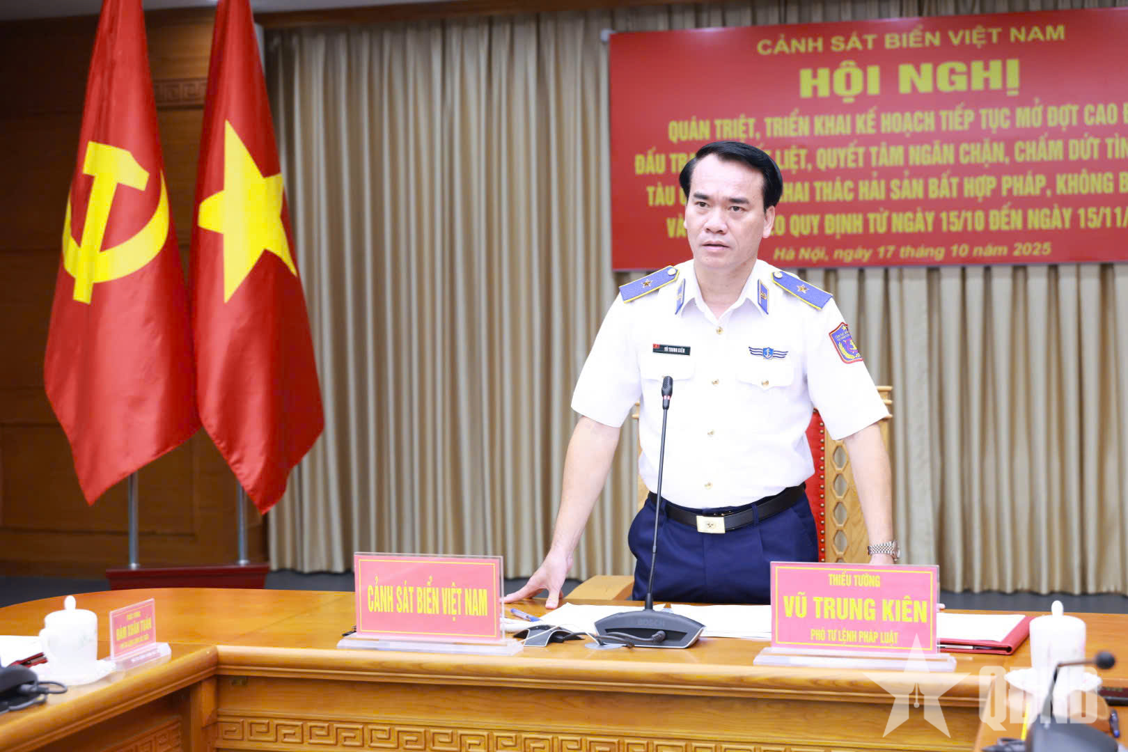 会議で演説したヴー・チュン・キエン少将は、各機関や部隊に対し、各レベルの指示を真剣に受け止め、ピーク期間の継続実施に向けた計画策定を組織し、11月15日までに漁船によるIUU漁業違反の状況を防止し、終わらせる決意をするよう要請した。