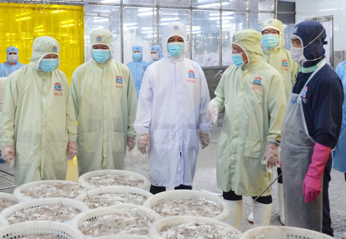 キエン・クオン・タック・カウ・シーフード社のグエン・クアン・ミン取締役会長は、同社はフー・クオン・グループの一員であり、4つの水産加工工場を持ち、主な製品はエビ、タコ、すり身魚のケーキであると語った。