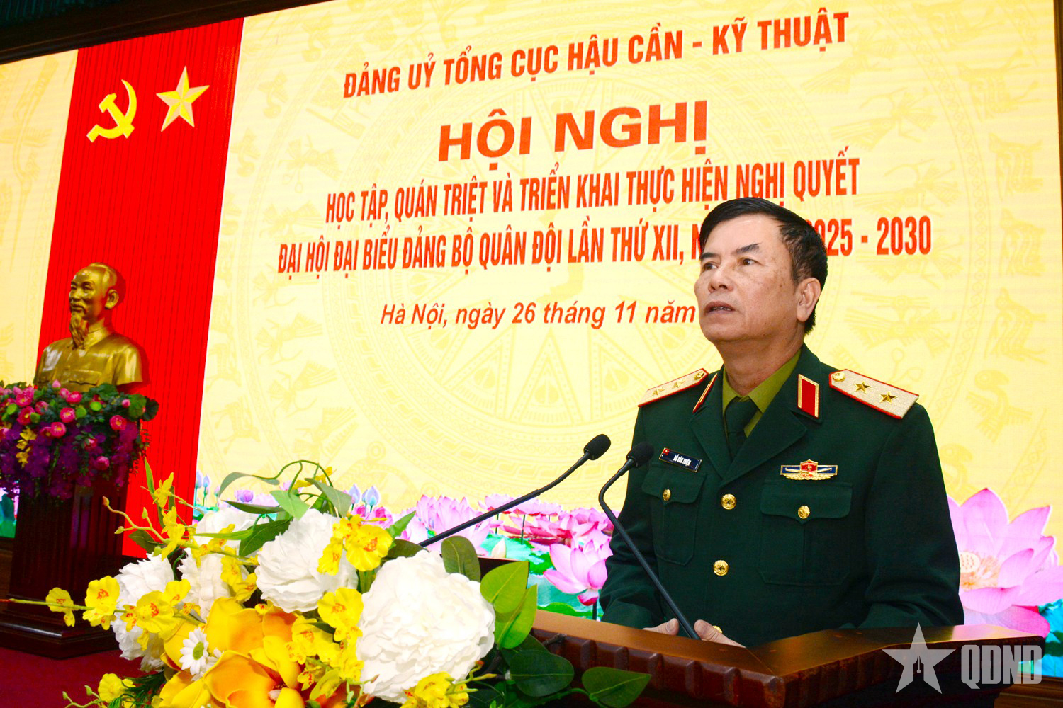 次に、総局副政治委員のグエン・ディン・チエウ少将が、2025年から2030年までの陸軍第12回党大会の決議を履行するための行動計画と、2025年から2030年までの兵站工兵総局第1回党大会の決議を履行するための行動計画を周知し、実施した。