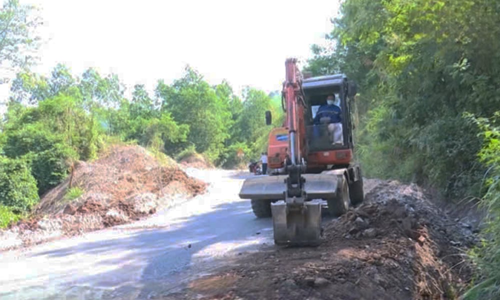 建設部隊が州道248号線の修復に機械を配備。 |