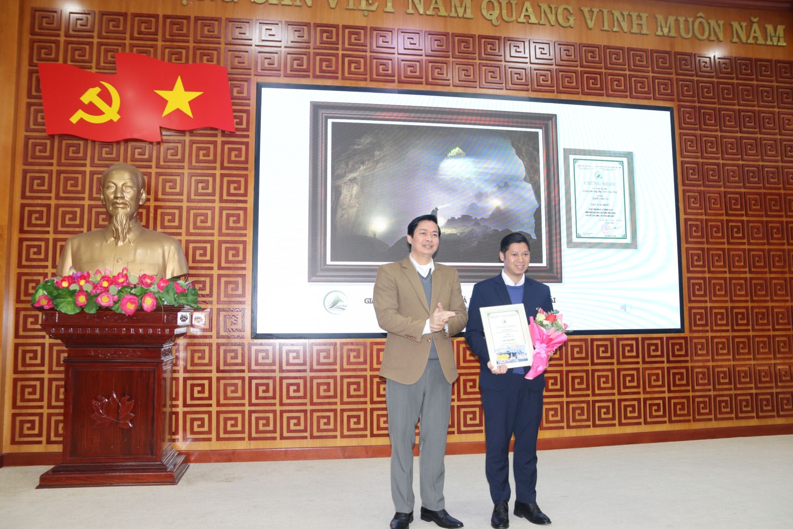 省党委員会宣伝大衆動員部副部長、組織委員会副委員長のグエン・ディン・トアン同志が、グエン・スアン・ロック氏の写真作品「チンチューチャイ洞窟探検」に最優秀賞を授与した。